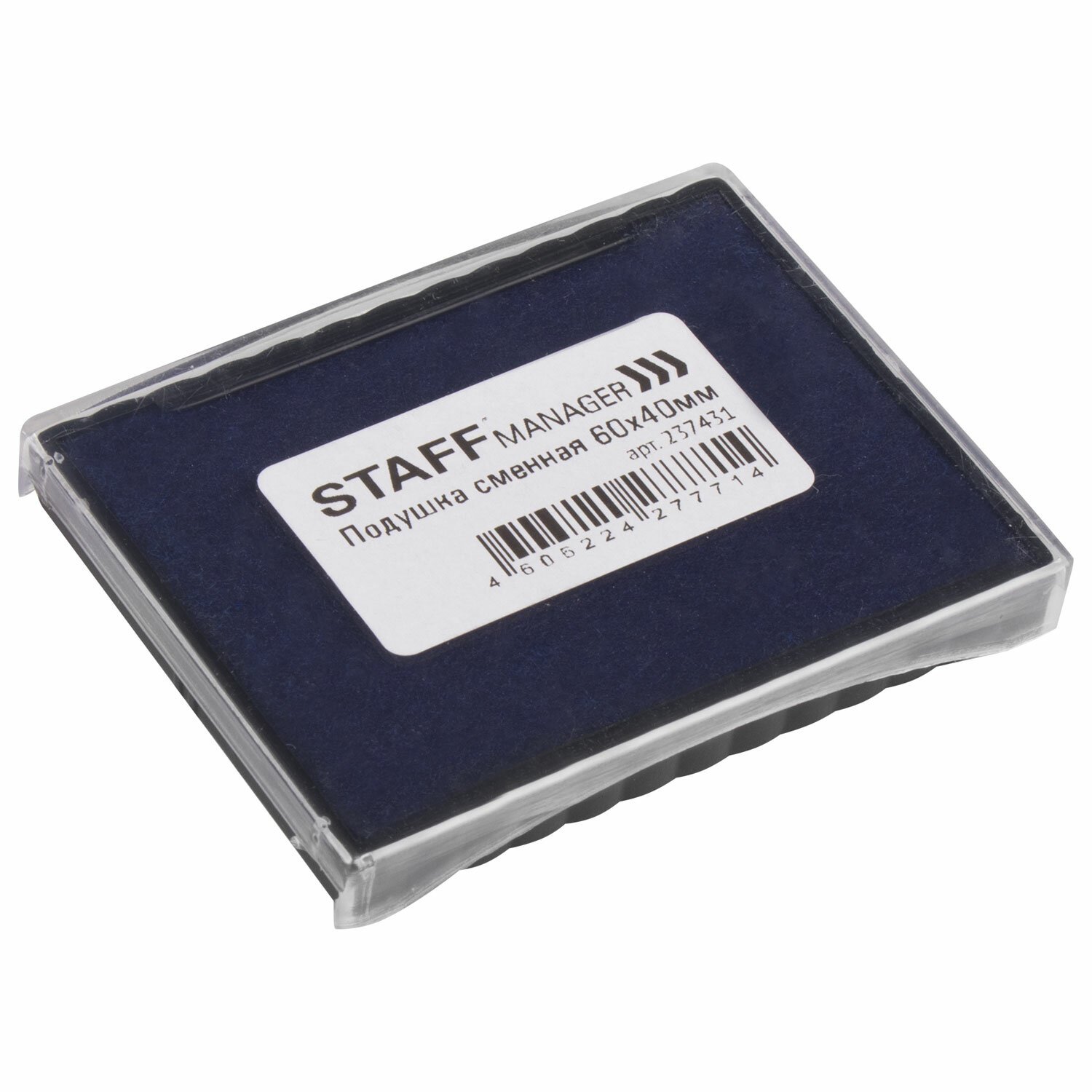 Подушка сменная STAFF (60х40 мм) для штампов "Printer 8028", "Printer 8027", синяя, 237431