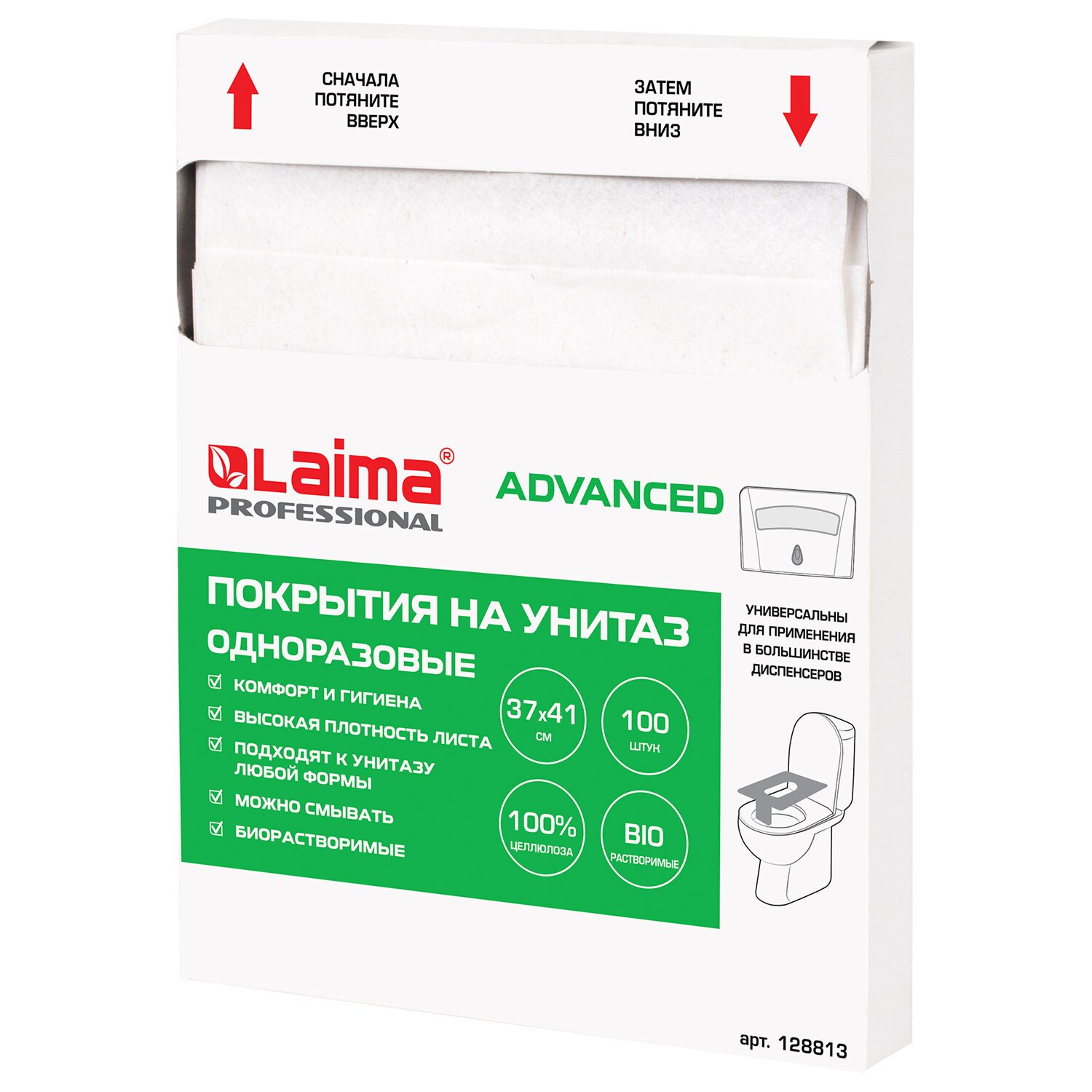 Покрытия на унитаз LAIMA, ADVANCED, 1/4 сложения, КОМПЛЕКТ 100 шт., 37х41 см, 128813