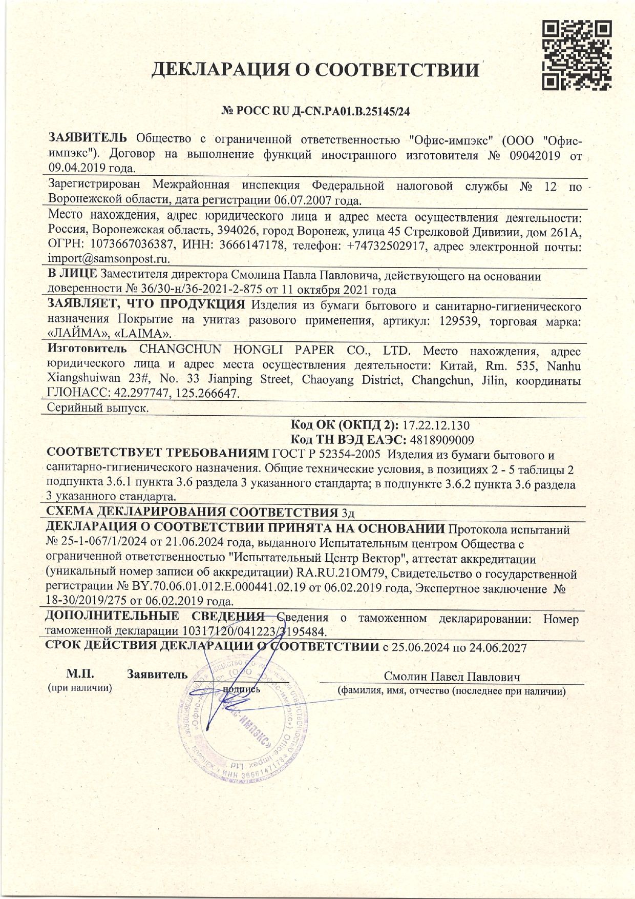 Сочетаются с оборудованием других производителей. Предназначены для одноразового использования. Подходят к унитазам любой формы. Изготовлены из 100% целлюлозы белого цвета. Тип сложения - 1/2. В упаковке 250 покрытий для унитаза. Размер листа - 42х37 см. Размер упаковки - 37,5х26х2 см.