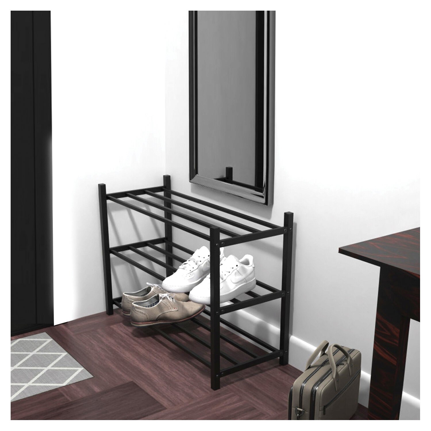Полка для обуви BRABIX "SMART SR-007", 710х285х498 мм, ЛОФТ, 3 полки, металл, чёрная, 701980
