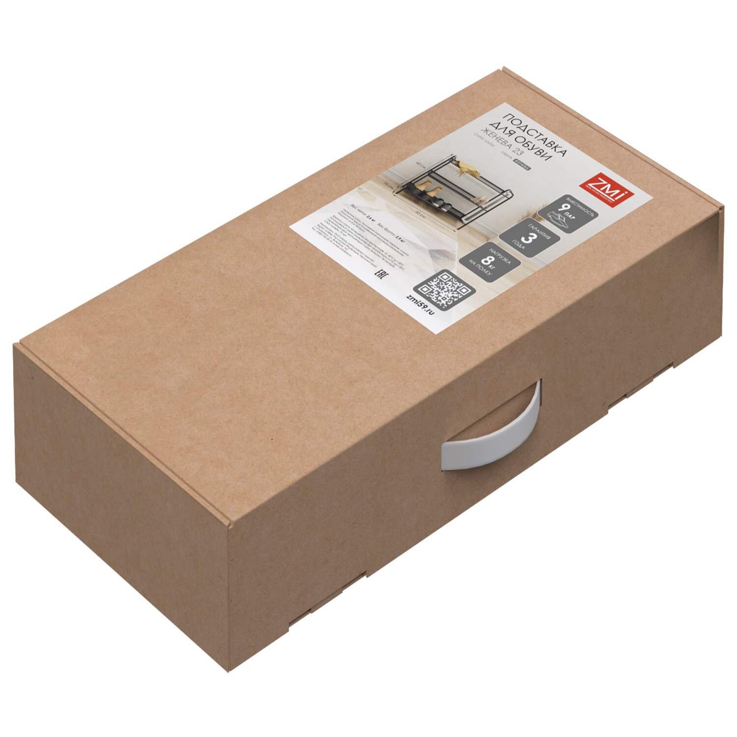 Три наклонные полки: каждая способна вместить до 3-х пар обуви и выдержать нагрузку до 8 кг.