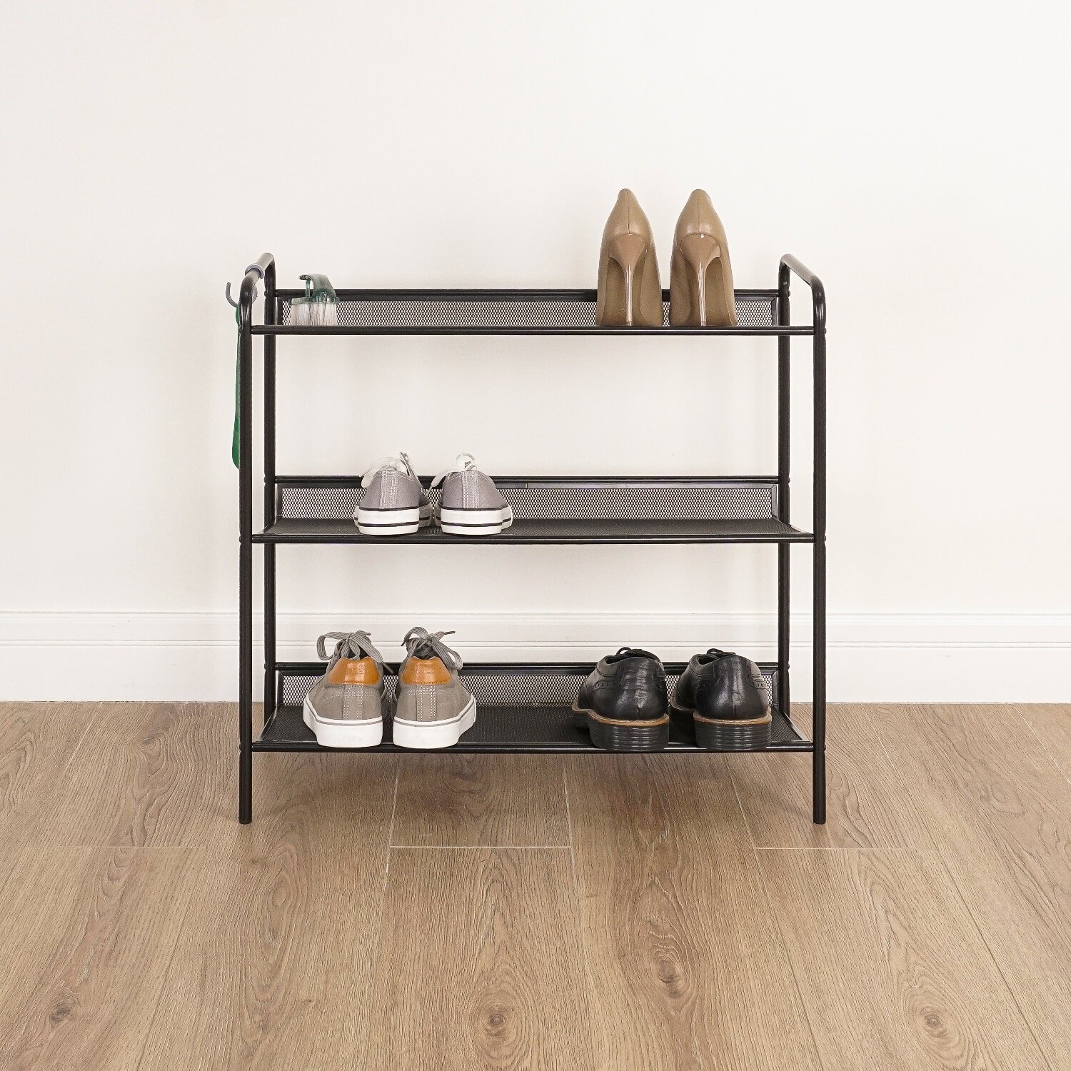 Полки имеют бортик, защищающий стену от грязной обуви.