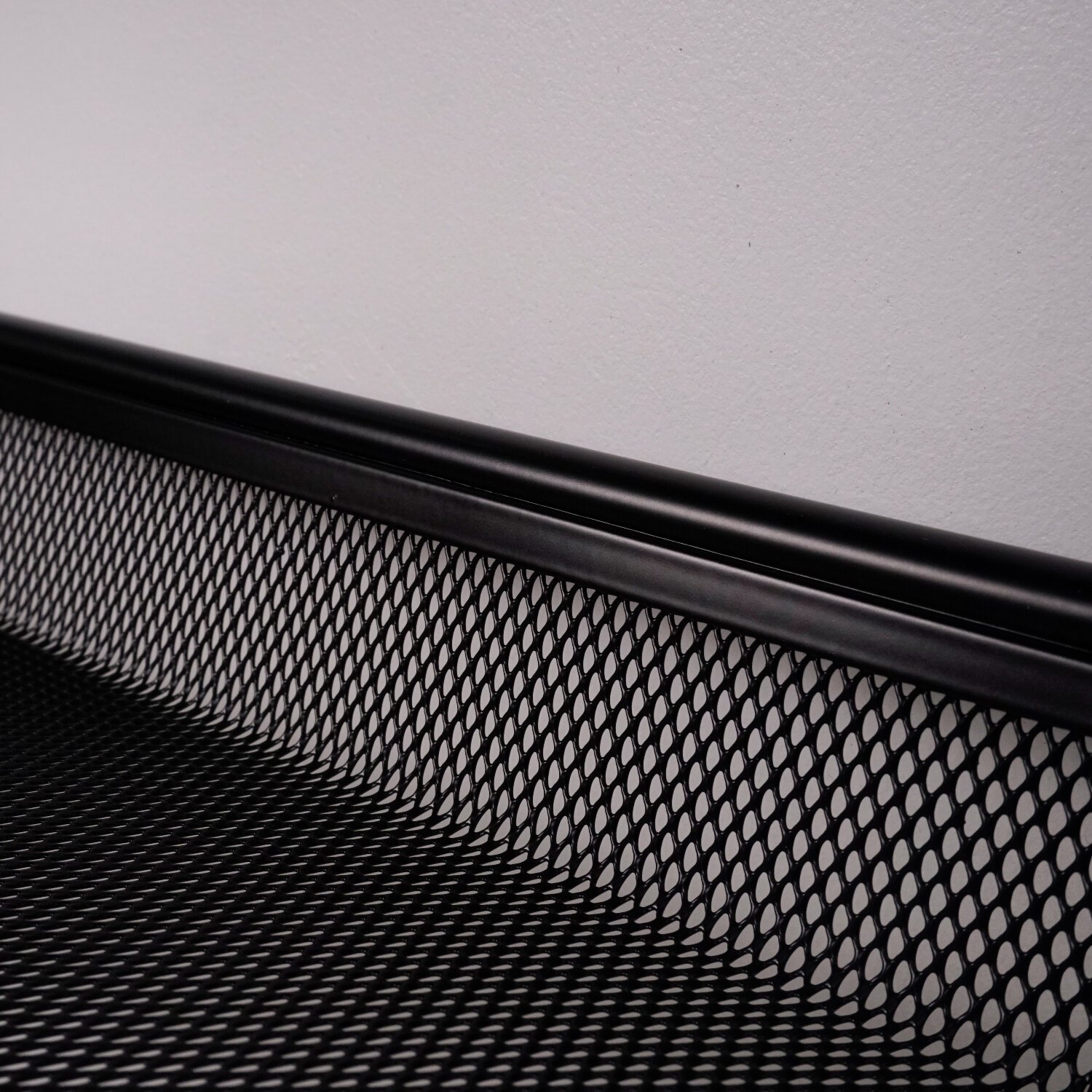 Этажерка выполнена из прочной металлической трубы диаметром 14 мм и стального листа в мелкую сетку.