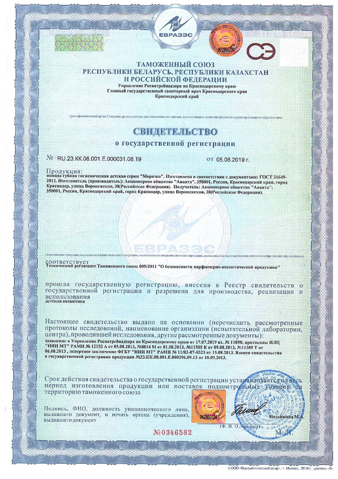Помада детская гигиеническая гипоаллергенная с витаминами 2,8 г, МОРОЗКО, 1569