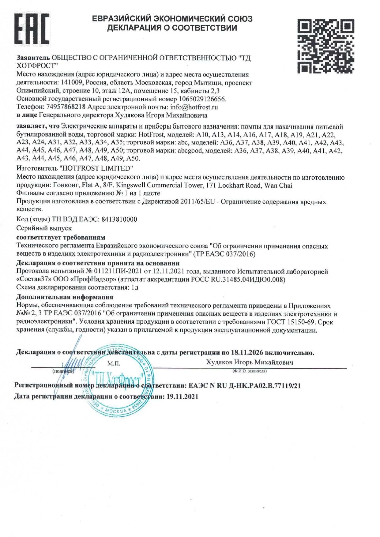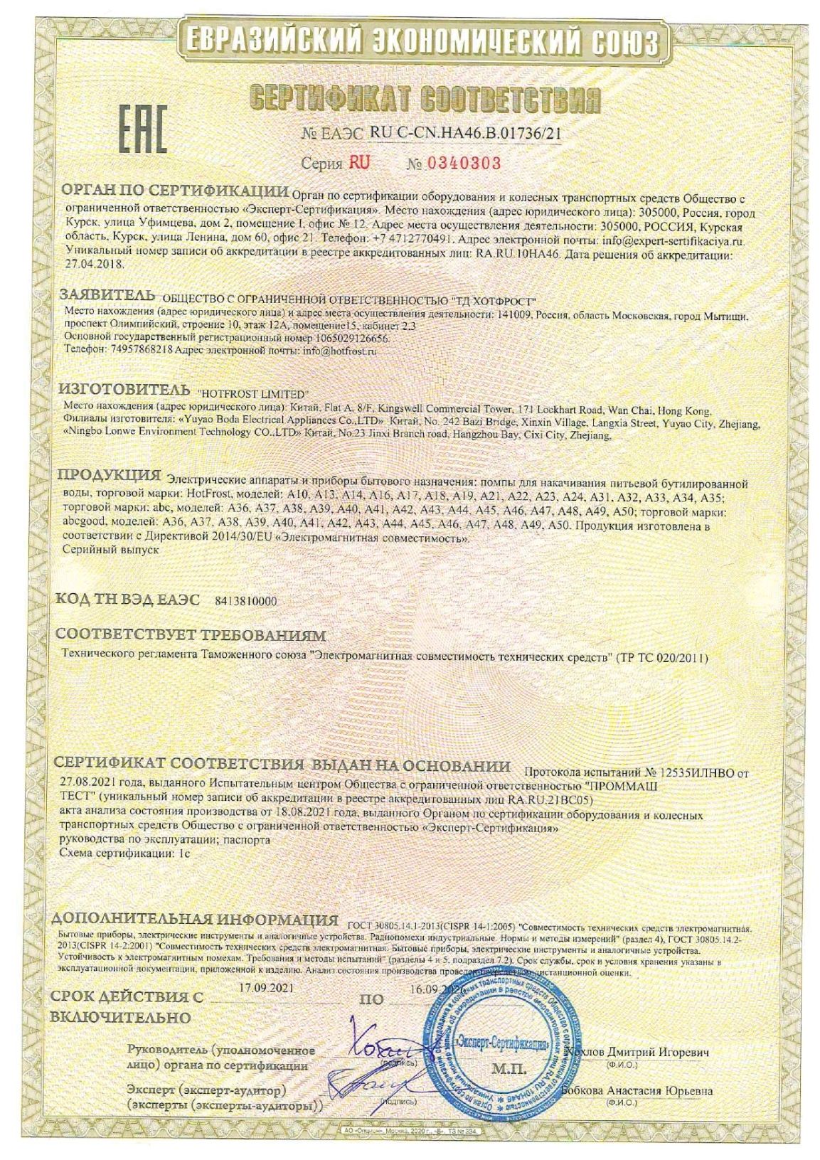 Помпа для воды HOT FROST A10, электрическая, 230501001