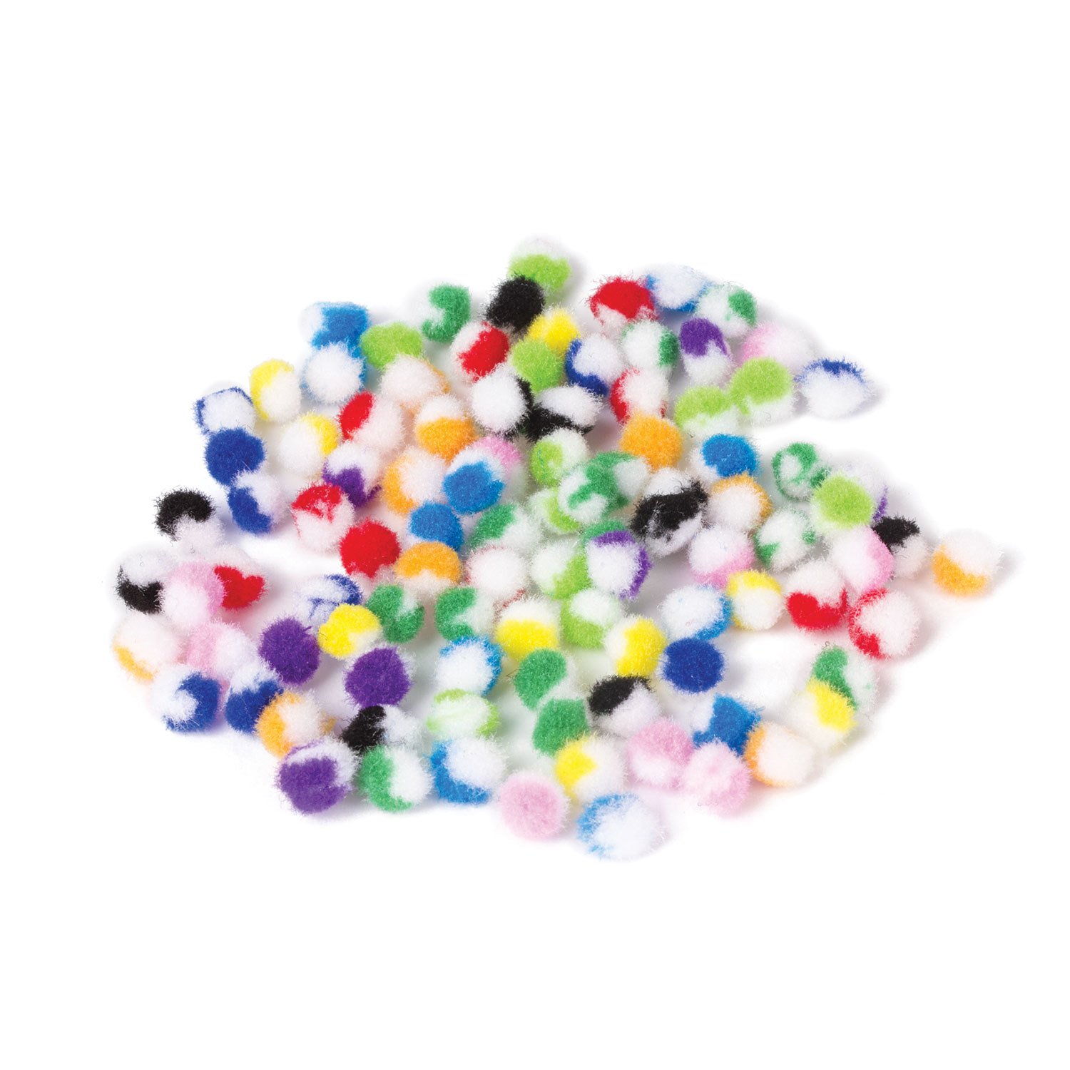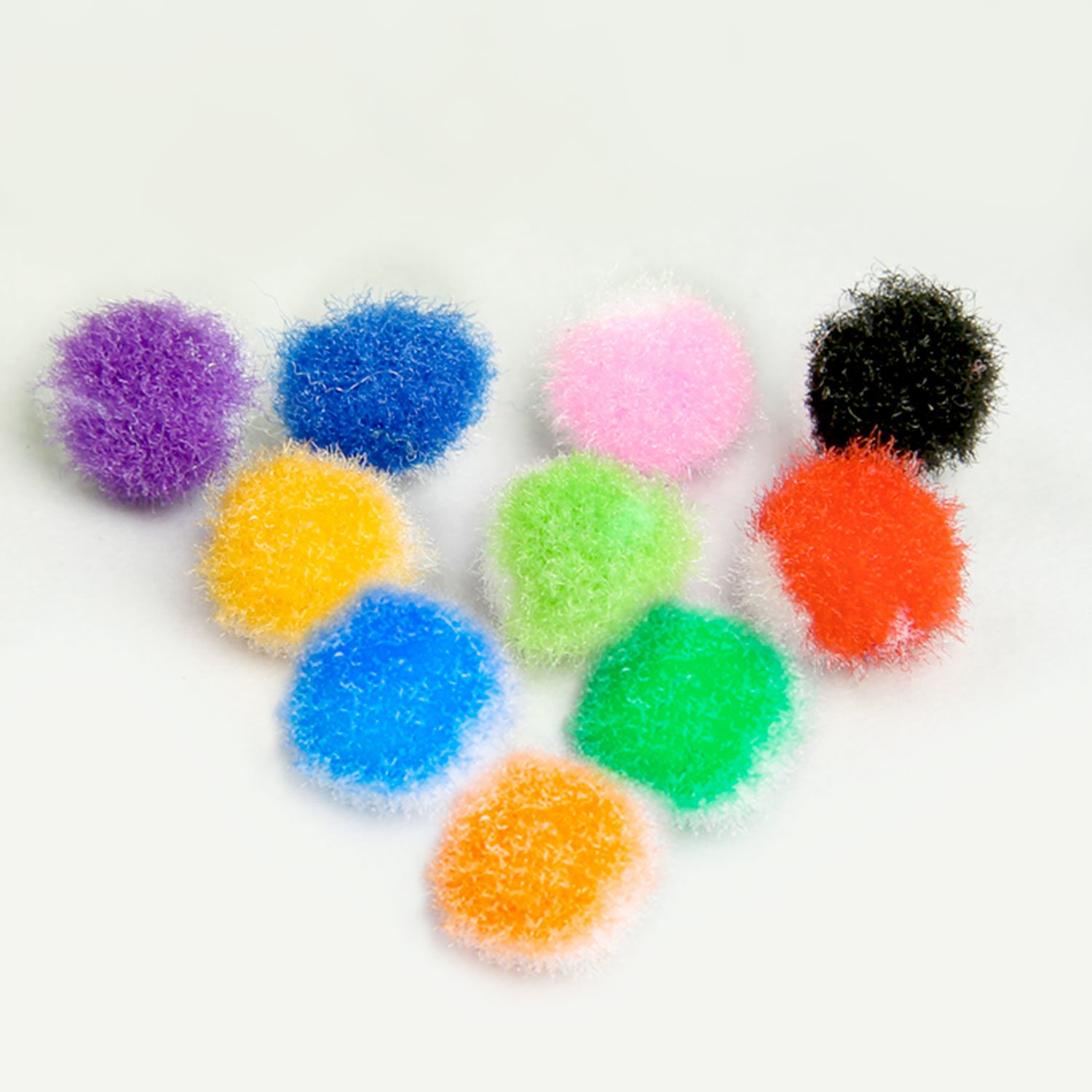 Изготовлены из качественного полиэстера и могут использоваться как взрослыми, так и детьми старше 3-х лет. Помпоны двухцветные: одна часть помпона белая, а другая выполнена в одном из 10 ярких цветов. Диаметр - 8 мм. Поставляются в пакете с европодвесом в количестве 100 штук.