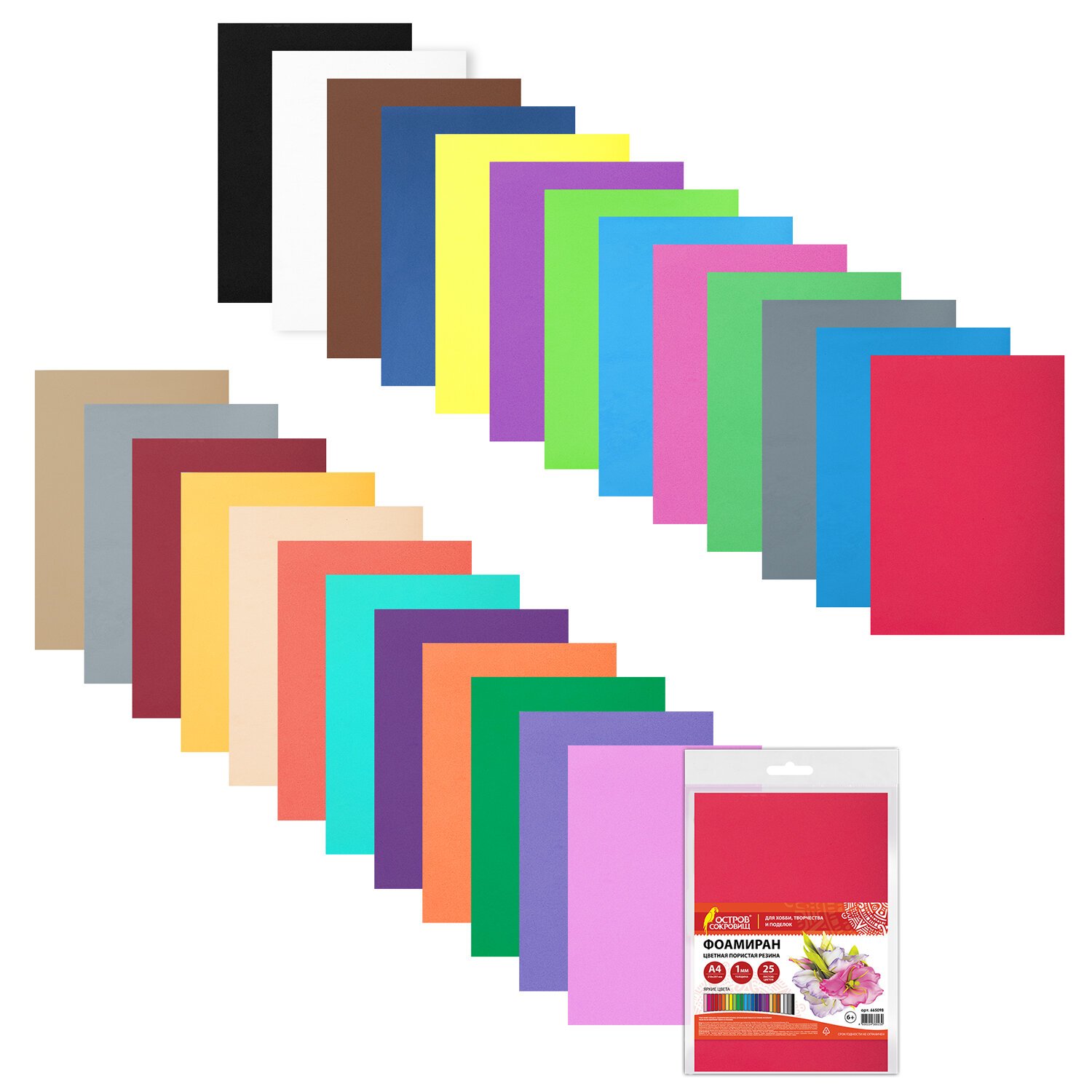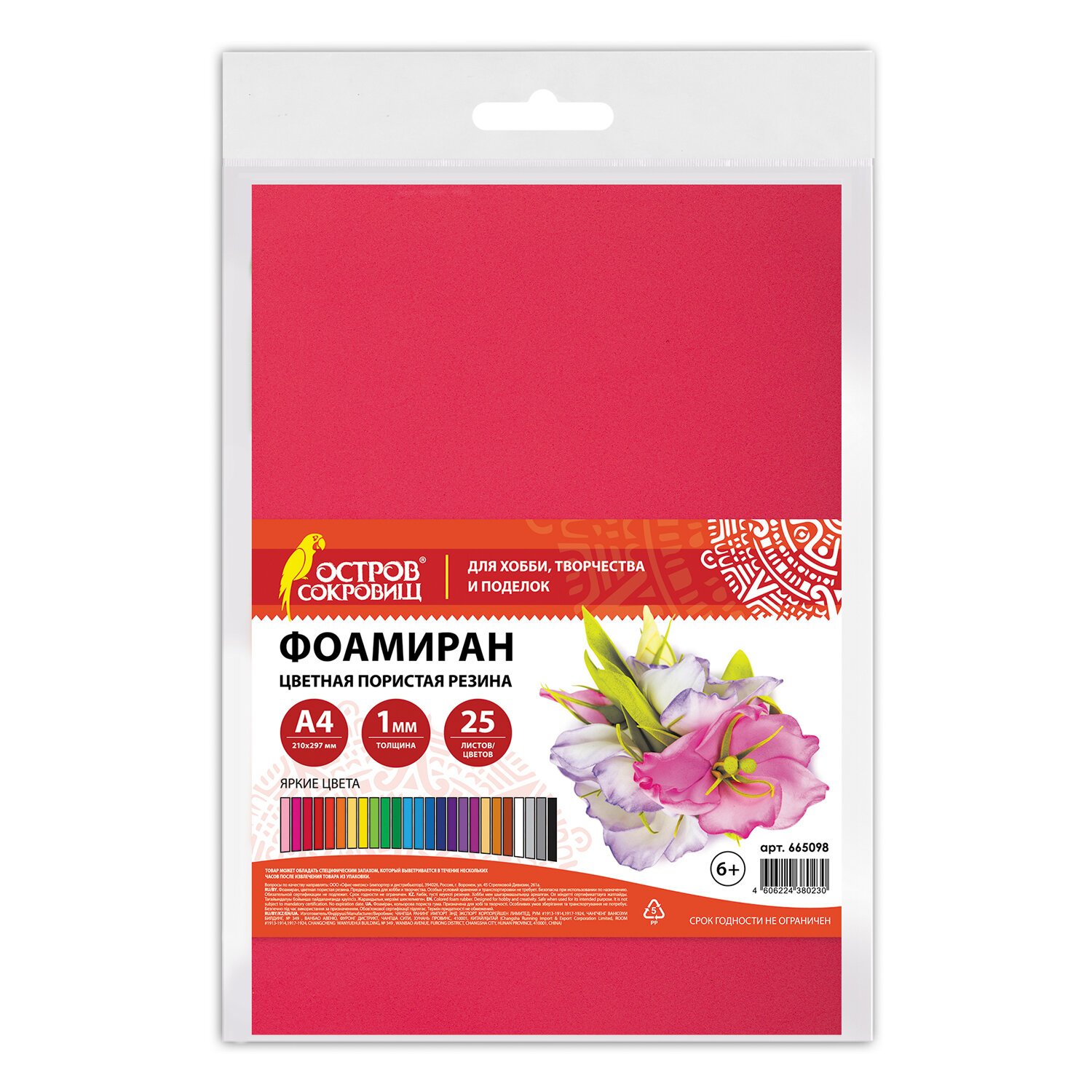 Пористая резина/фоамиран А4, 1 мм, 25 листов, 25 цветов, яркие цвета, ОСТРОВ СОКРОВИЩ, 665098