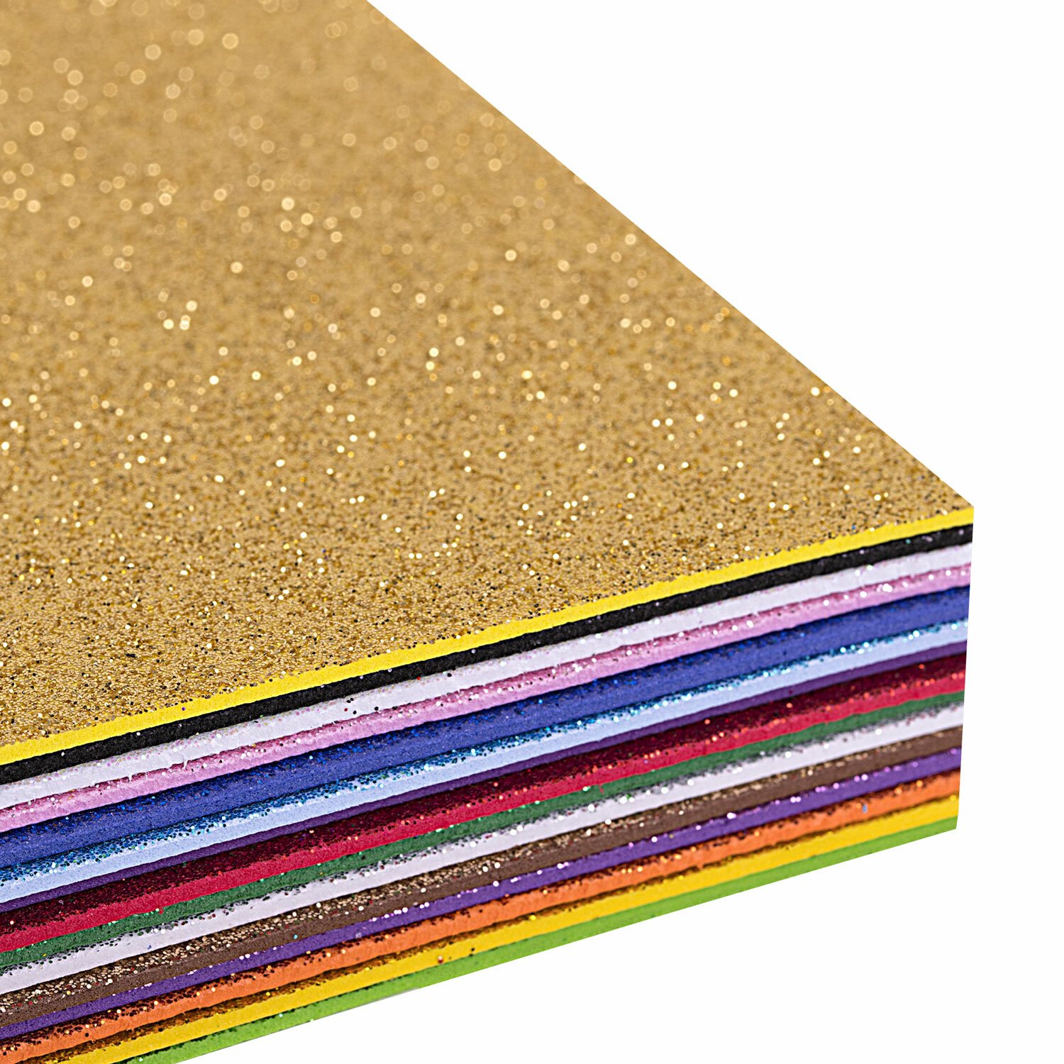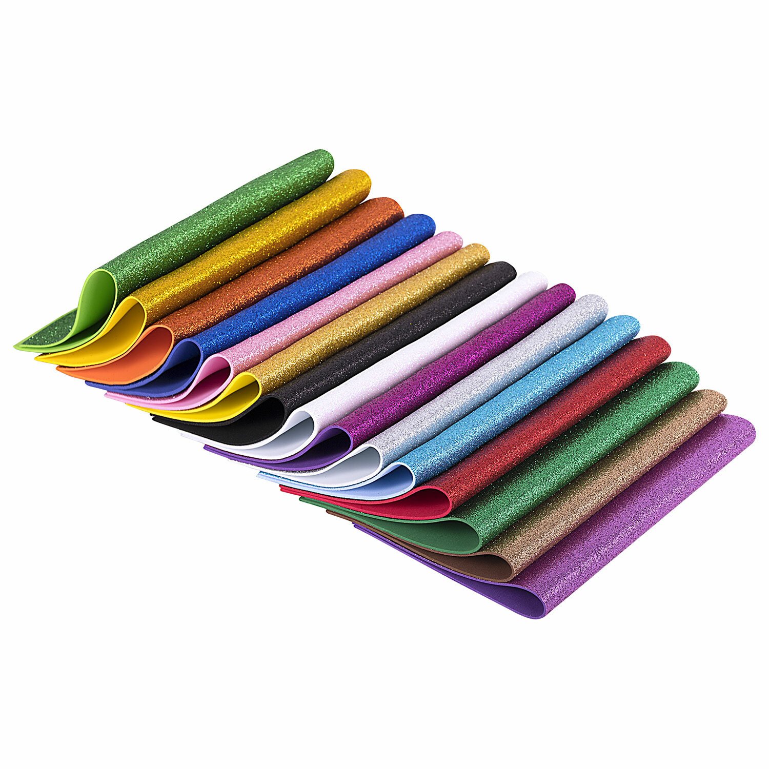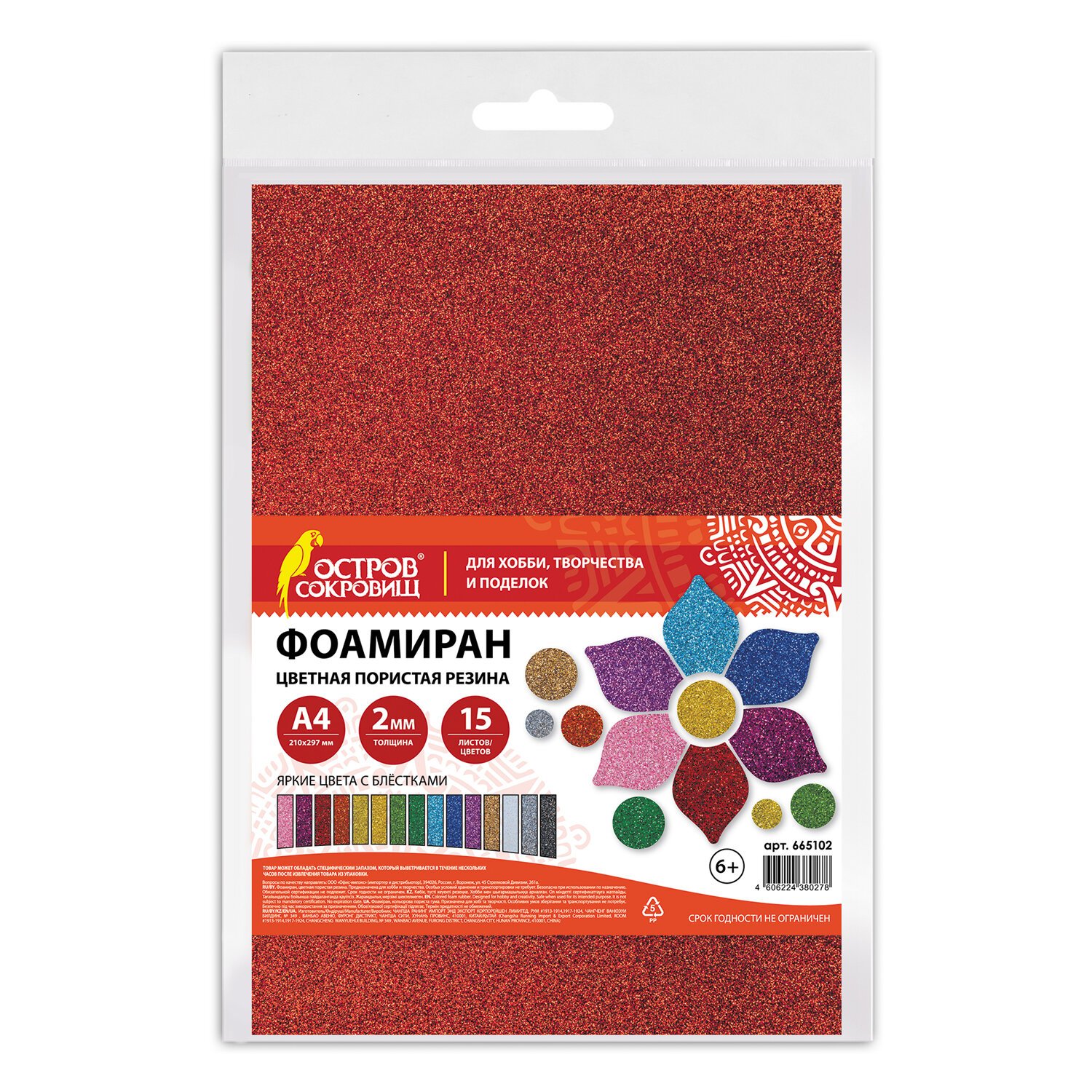 Пористая резина/фоамиран А4, 2 мм, 15 листов, 15 цветов, яркие цвета, блестки, ОСТРОВ СОКРОВИЩ, 665102