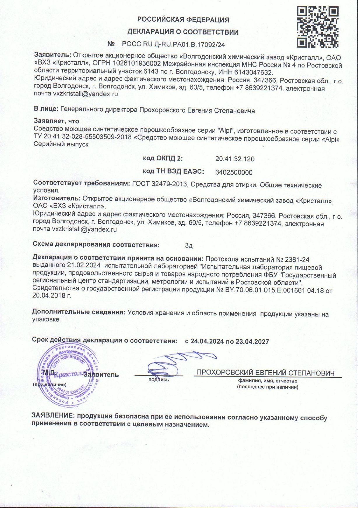 Средство моющее синтетическое порошкообразное GRASS ALPI SENSITIVE.