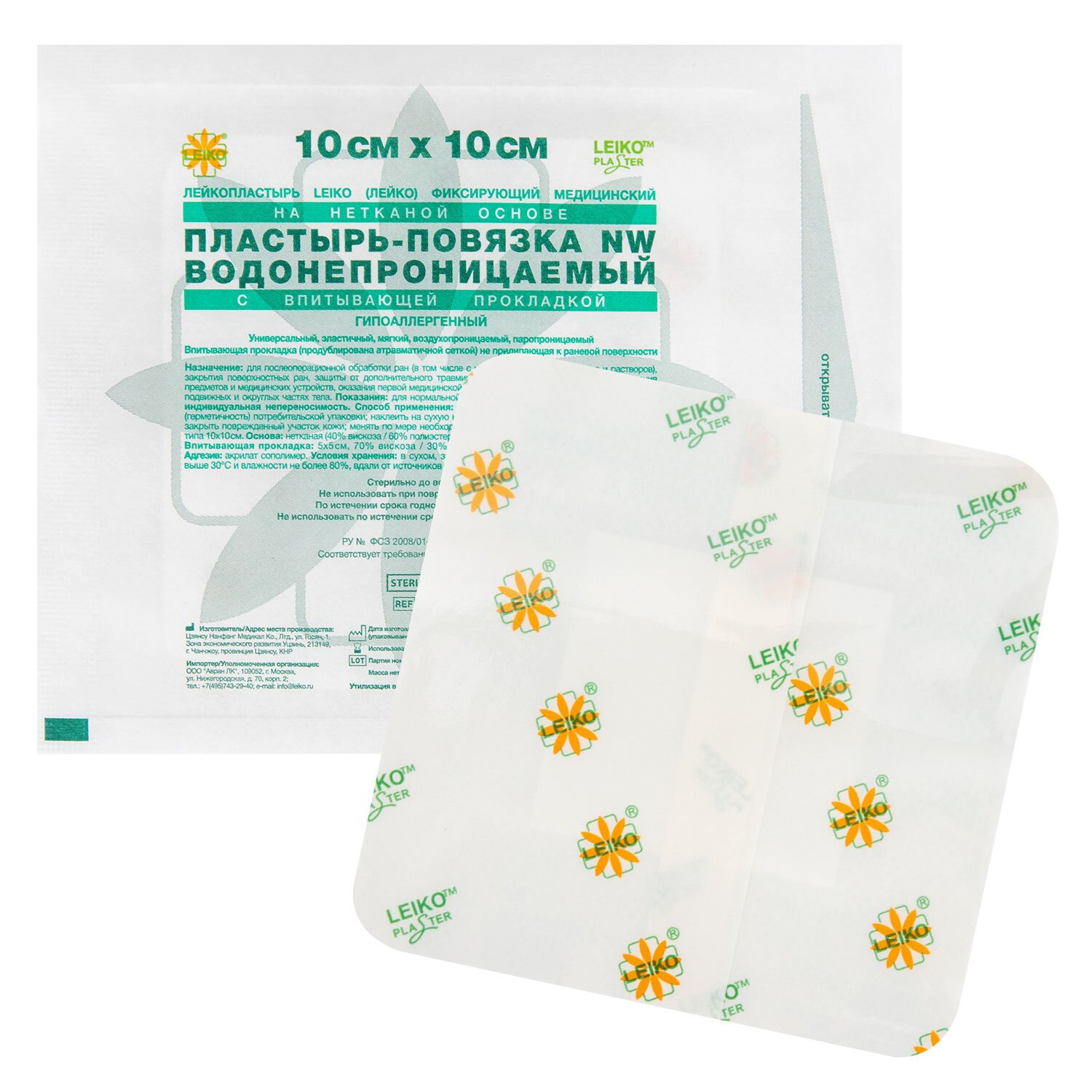 Послеоперационная пластырь-повязка LEIKO 10х10 см, на нетканой основе, со впитывающей прокладкой, 113965