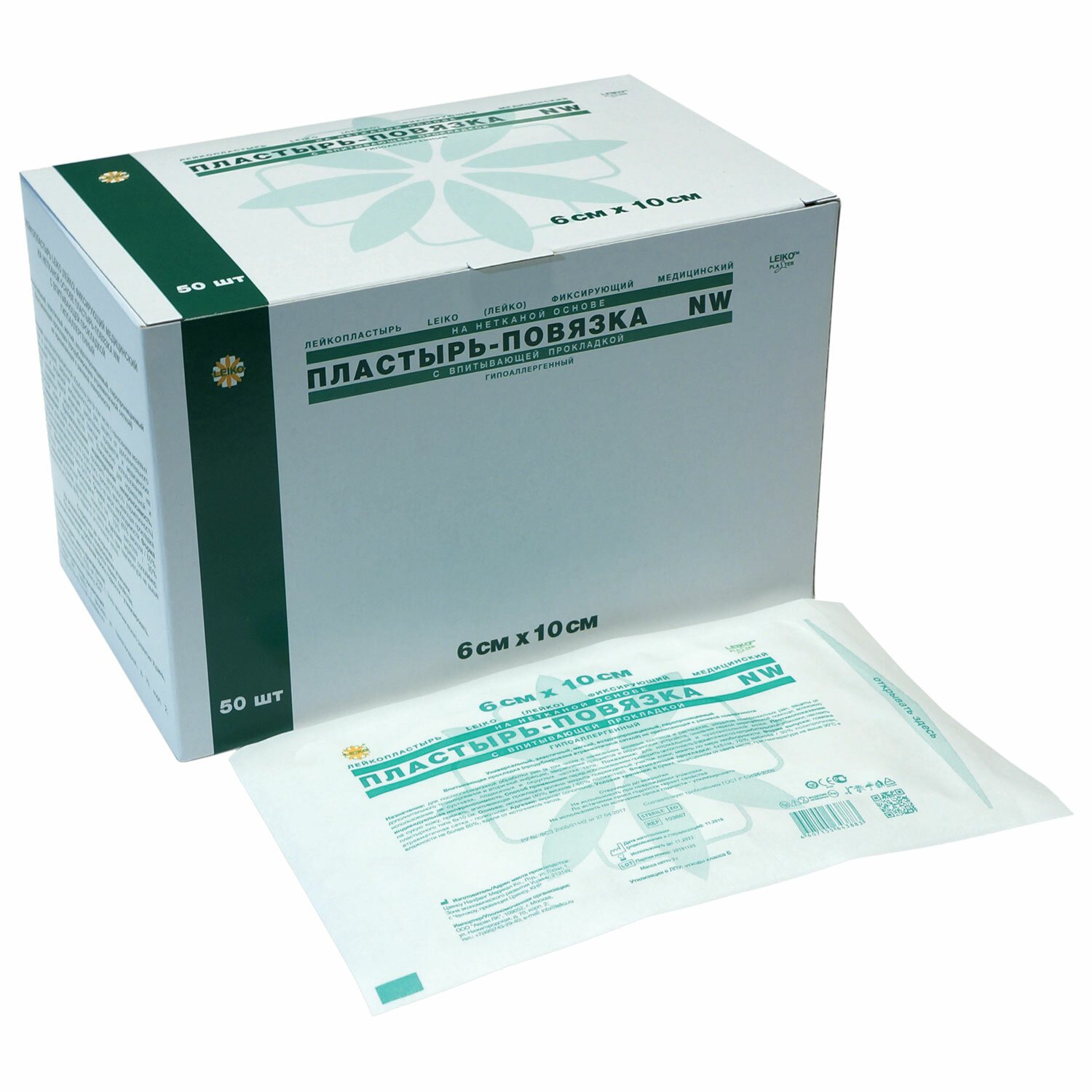 Пластырь-повязка 8х10 см LEIKO КОМПЛЕКТ 50 шт., нетканая основа c подушечкой ш/к 43937, 113862