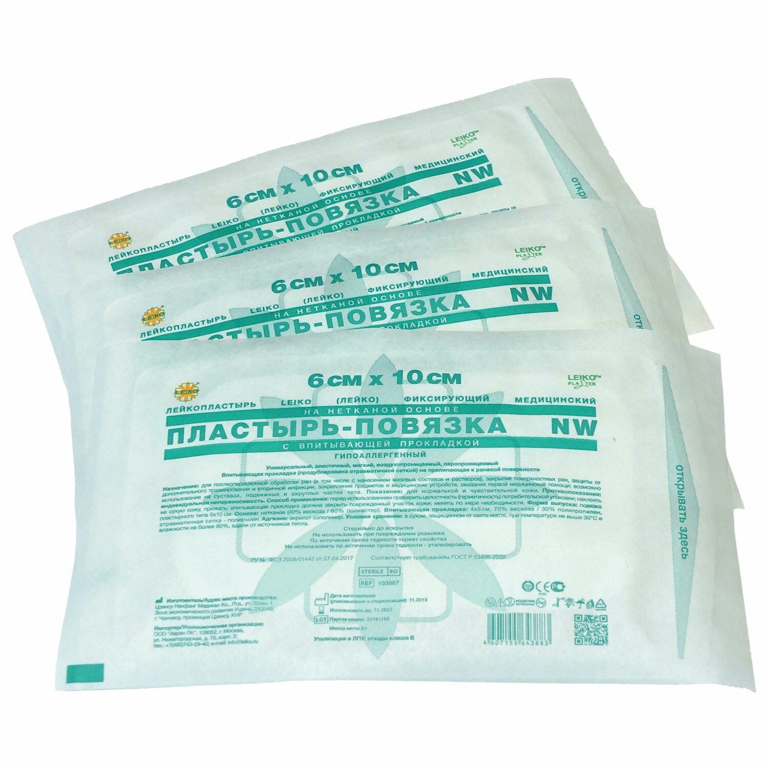 Послеоперационная пластырь-повязка LEIKO 6х10 см, на нетканой основе, со впитывающей прокладкой, 103967