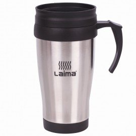 Автокружка 400 мл, термостакан с ручкой, винтовая крышка-клапан, пластик/сталь, серебро, LAIMA, 605126