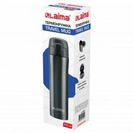 Термокружка 470 мл из нержавеющей стали SUS304, бесконечно темно-серый металлик, LAIMA, 608827