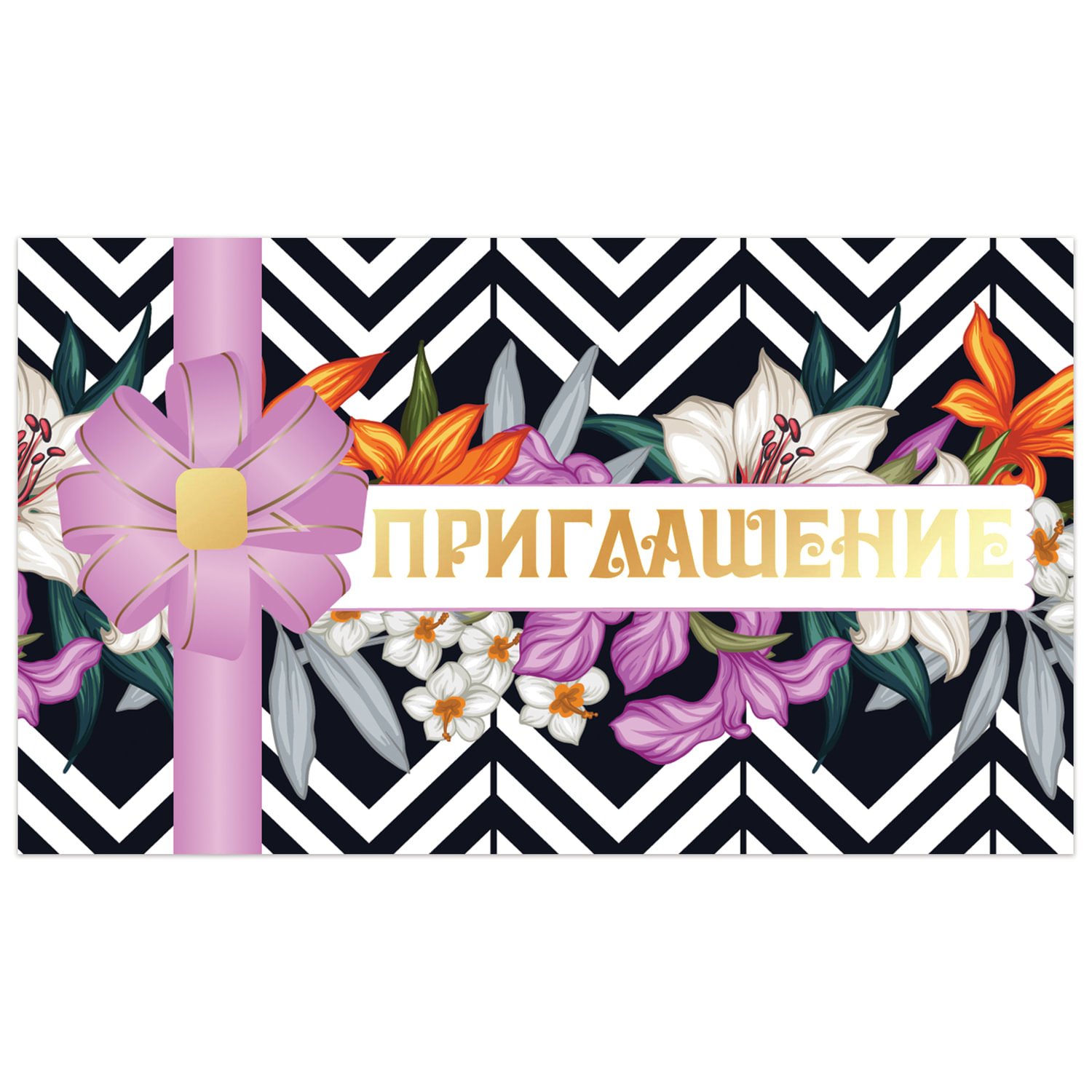 Приглашение 70х120 мм (в развороте 70х240 мм), "Золотое", фольга, ЗОЛОТАЯ СКАЗКА, 128923