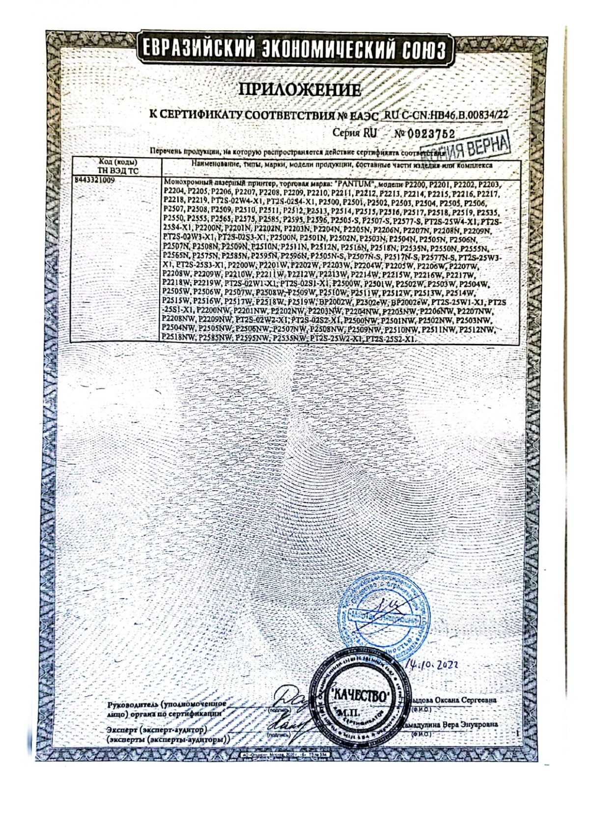 Принтер лазерный PANTUM P2500w А4, 22 стр./мин., 15000 стр./мес., Wi-Fi, P2500W