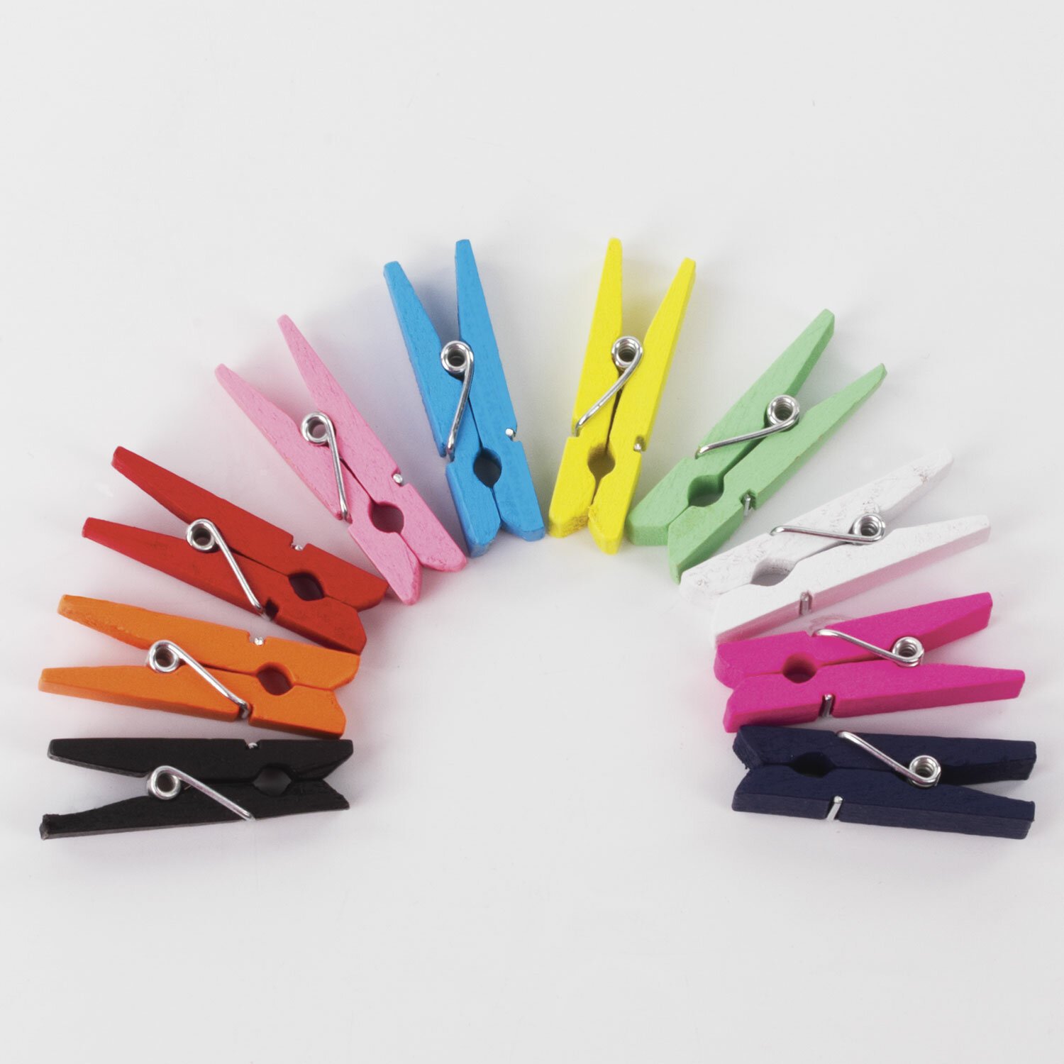 Изготовлены из дерева. Имеют классическую гладкую форму и выполнены в 10 ярких цветах. Длина прищепки - 3,5 см. Предназначены для детей старше 3-х лет. Поставляются в пакете с европодвесом в количестве 20 штук.