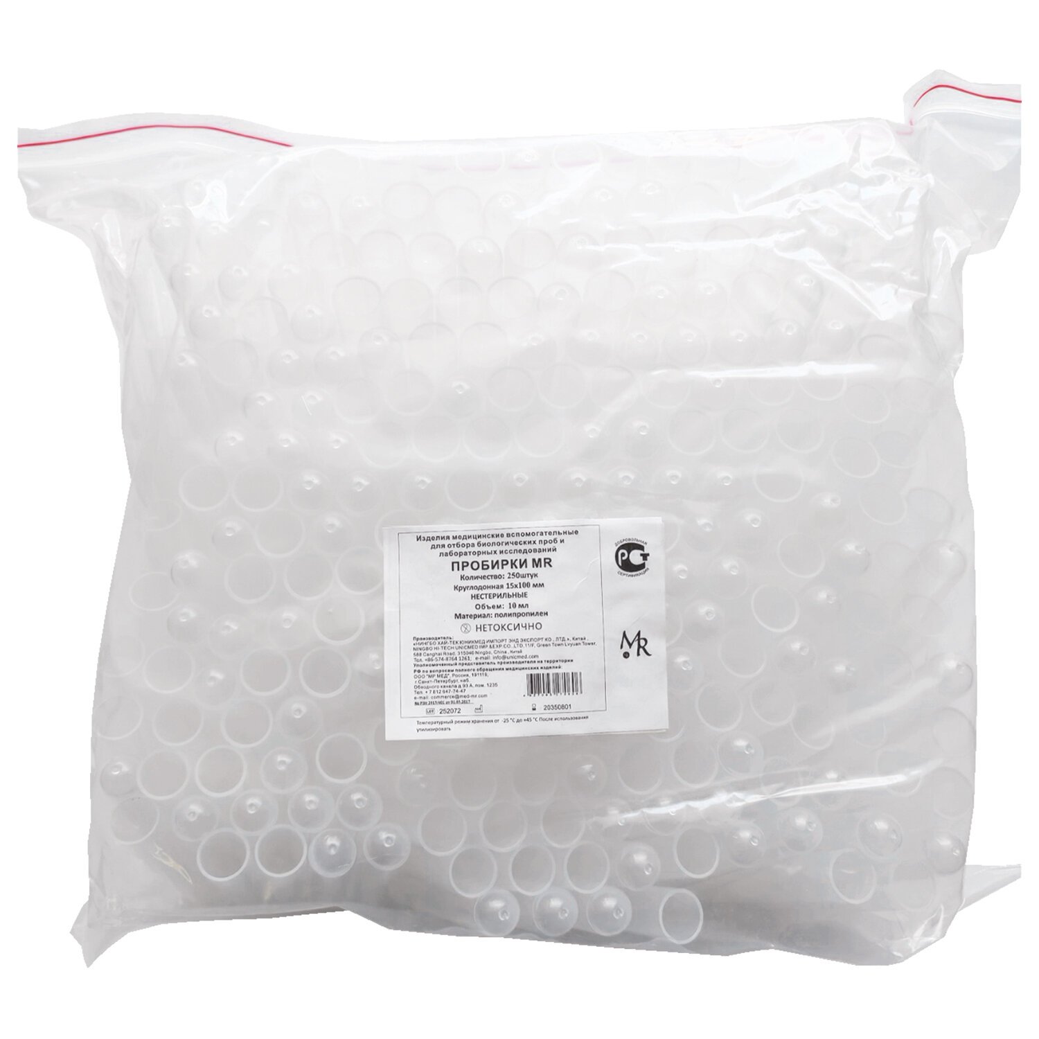 Пробирка лабораторная центрифужная 10 мл (15х100мм) нестерильная КОМПЛЕКТ 250шт, MR MED, шк76066