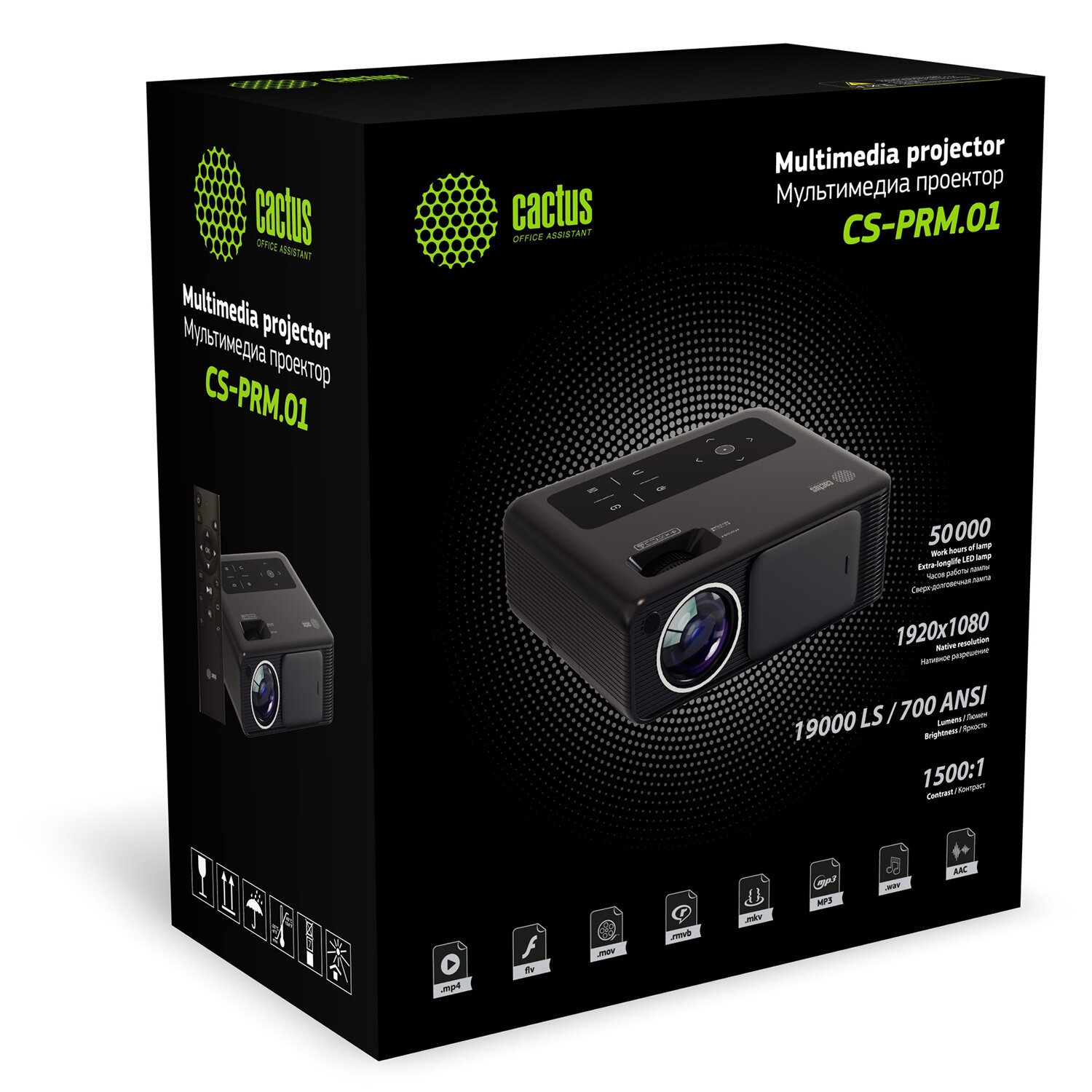 Проектор CACTUS CS-PRM.07B.WUXGA, LCD, 1920x1080, 16:9, 3200 лм, 1500:1, 1,16 кг, черный