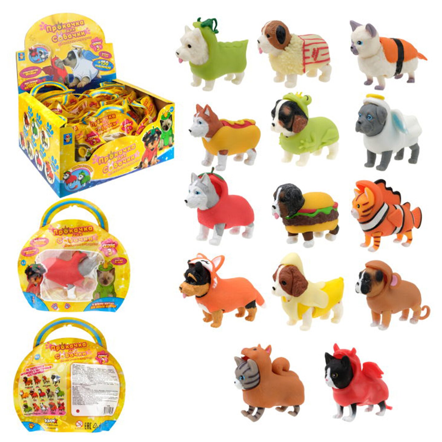 Прокачка для собачки серия 3, тянущиеся собачки и кошечки в костюмчиках, 1TOY, Т23804