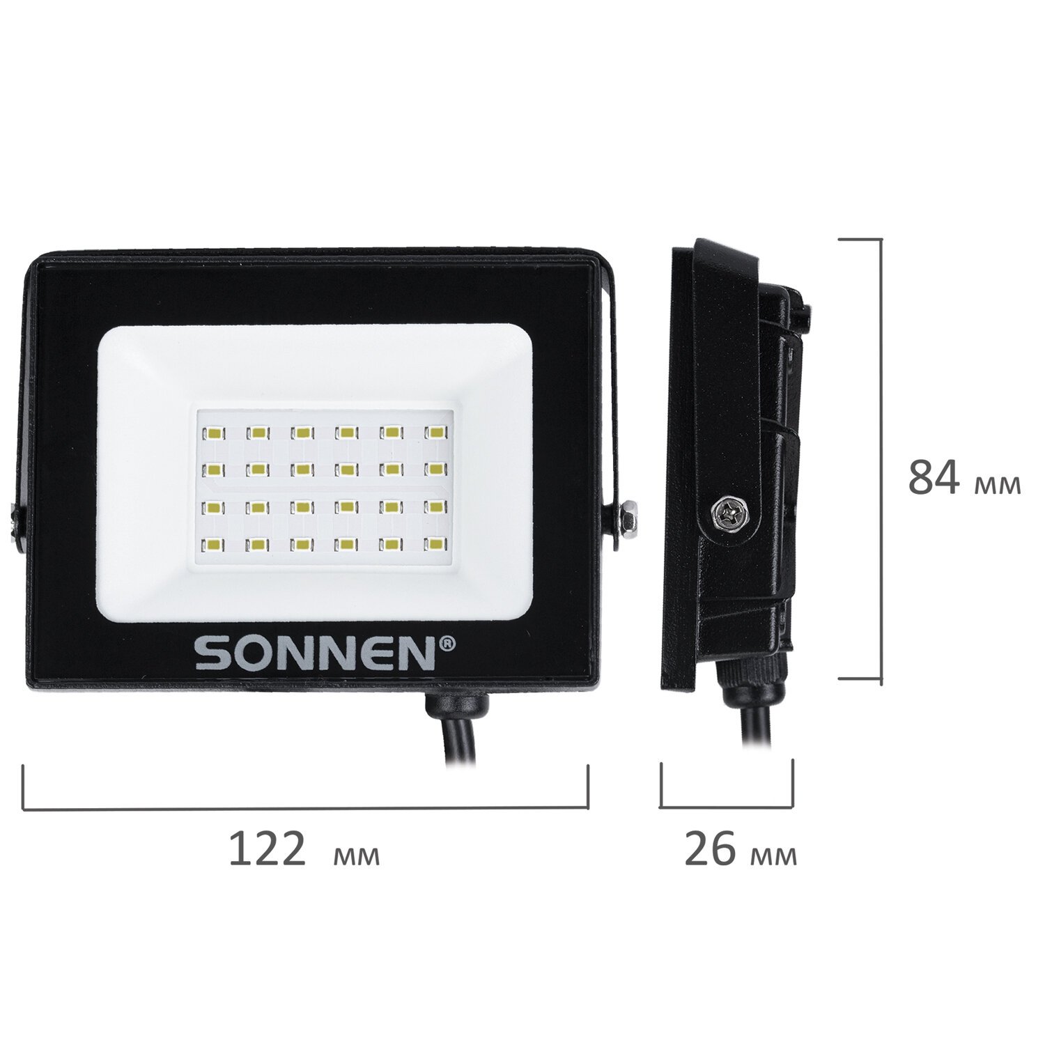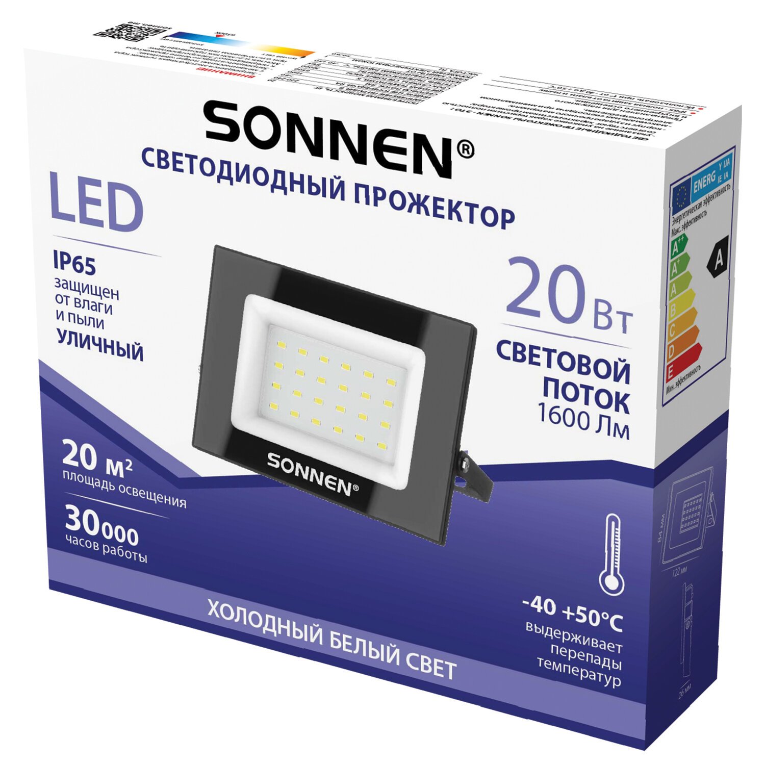 Прожектор светодиодный 20Вт, 6500К, 1600Лм, IP65, 122x84x26мм, черный, SONNEN, 238412