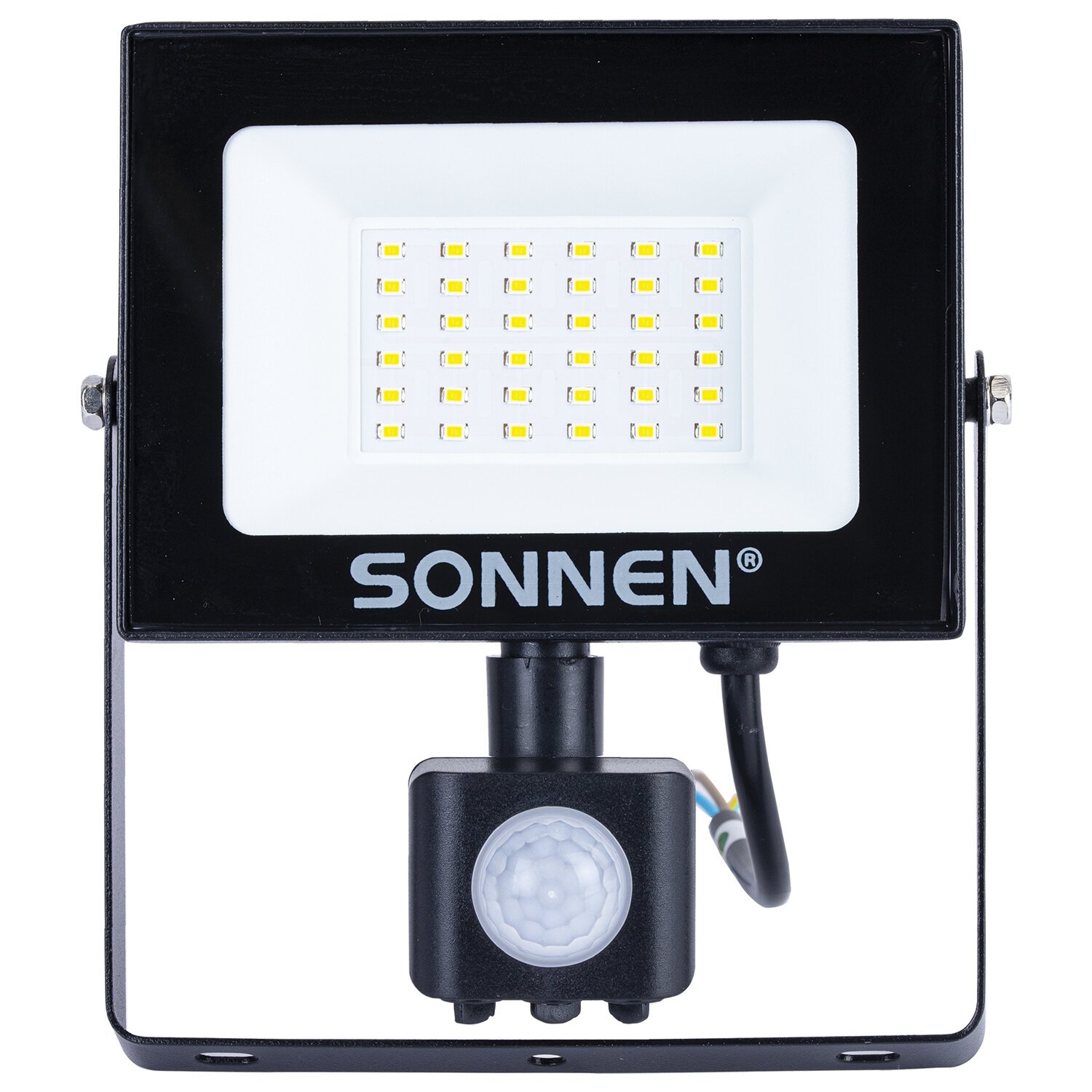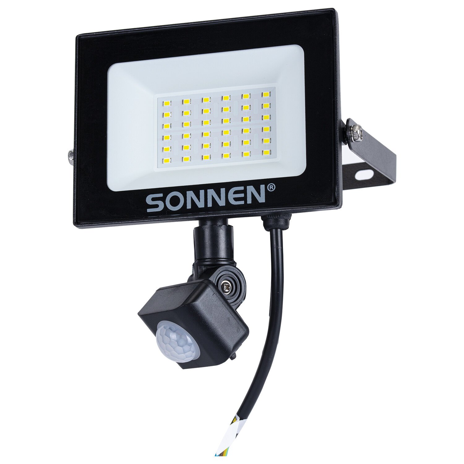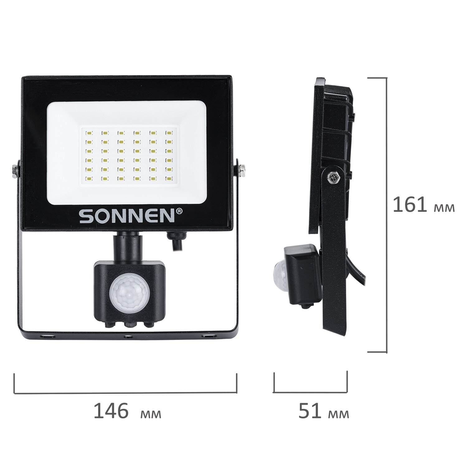 Прожектор светодиодный с датчиком движения 30Вт, 6500К, 2400Лм, IP65, 161х146х51мм, черный, SONNEN, 238417
