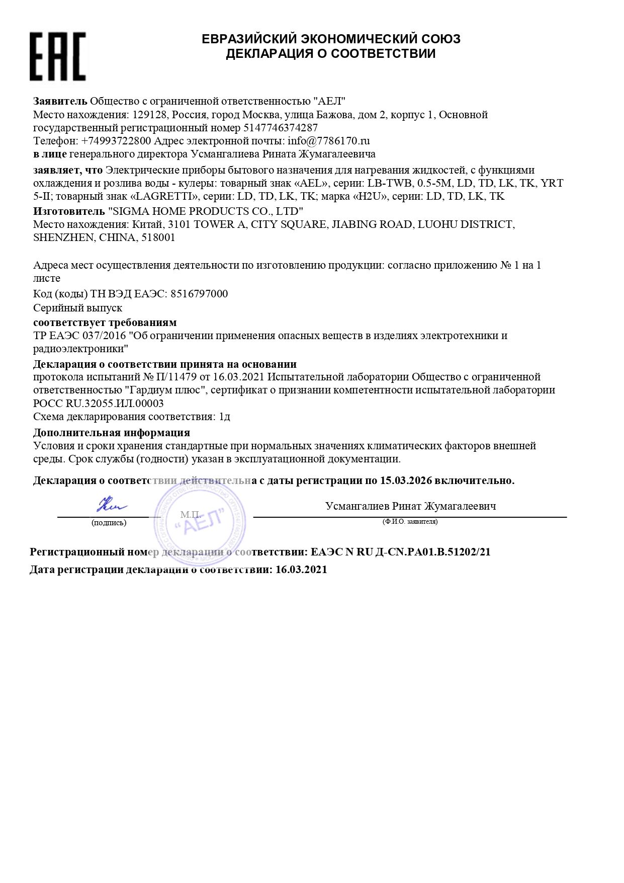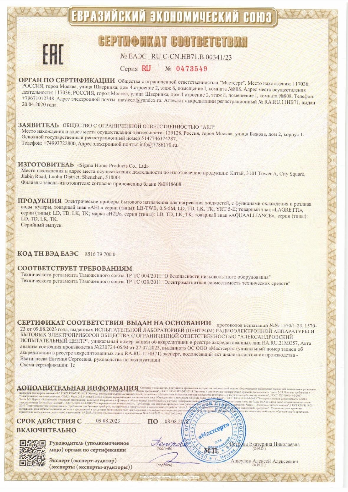 | Тип охлаждения воды | электронное |
