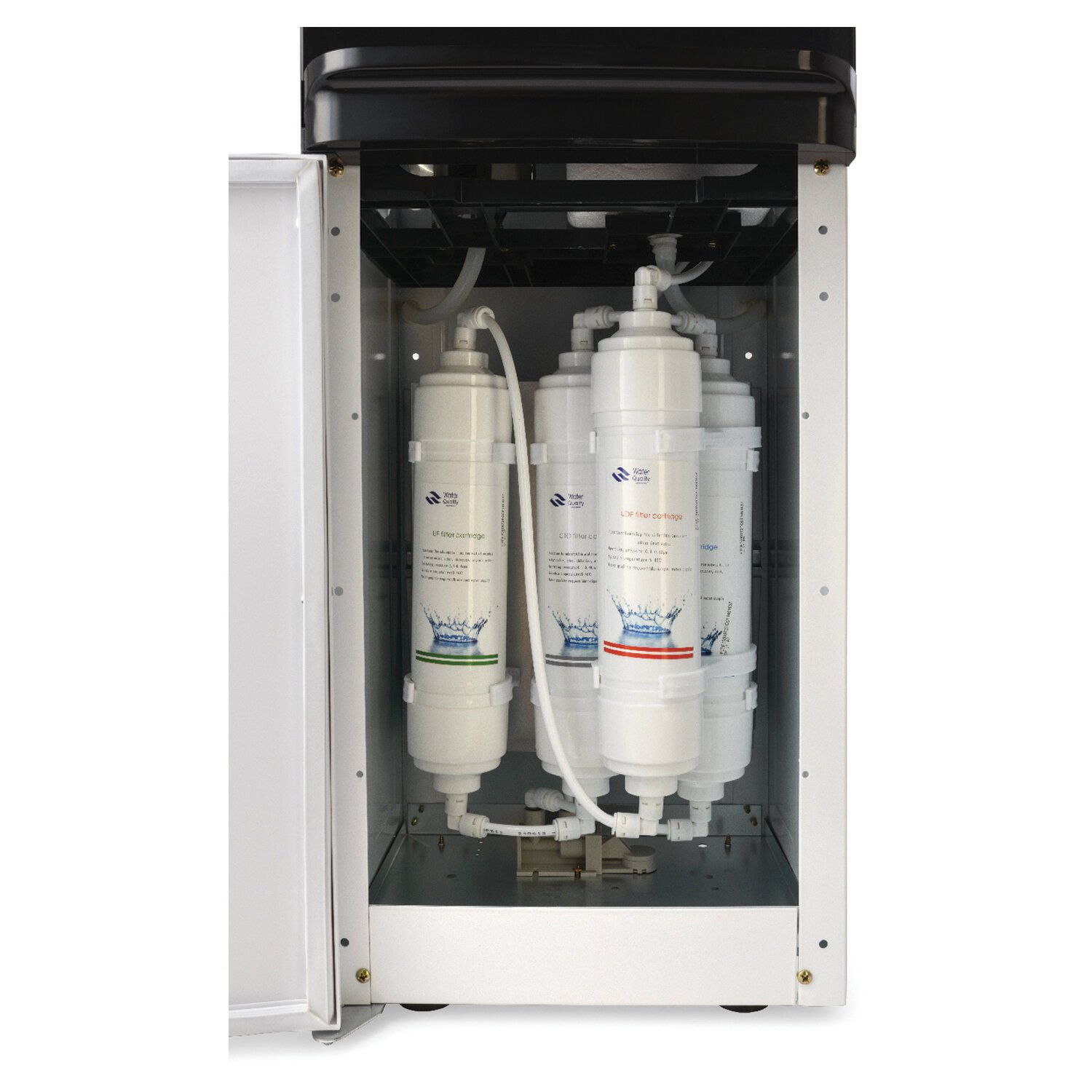 Напольный пурифайер c электронным охлаждением с 4х UF-системой очистки. Модель комплектована защитой от протечки, удобными кранами нажим чашкой: горячая/холодная.