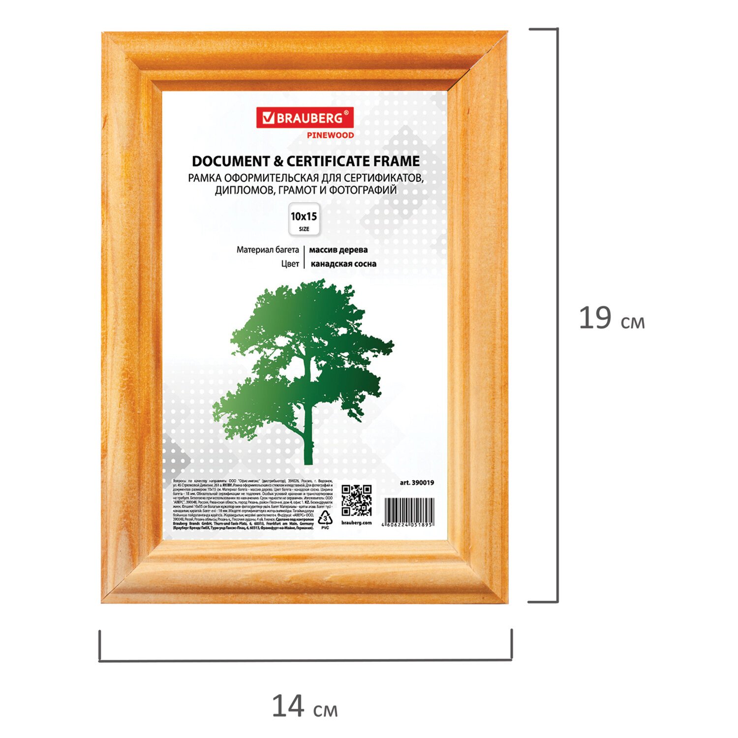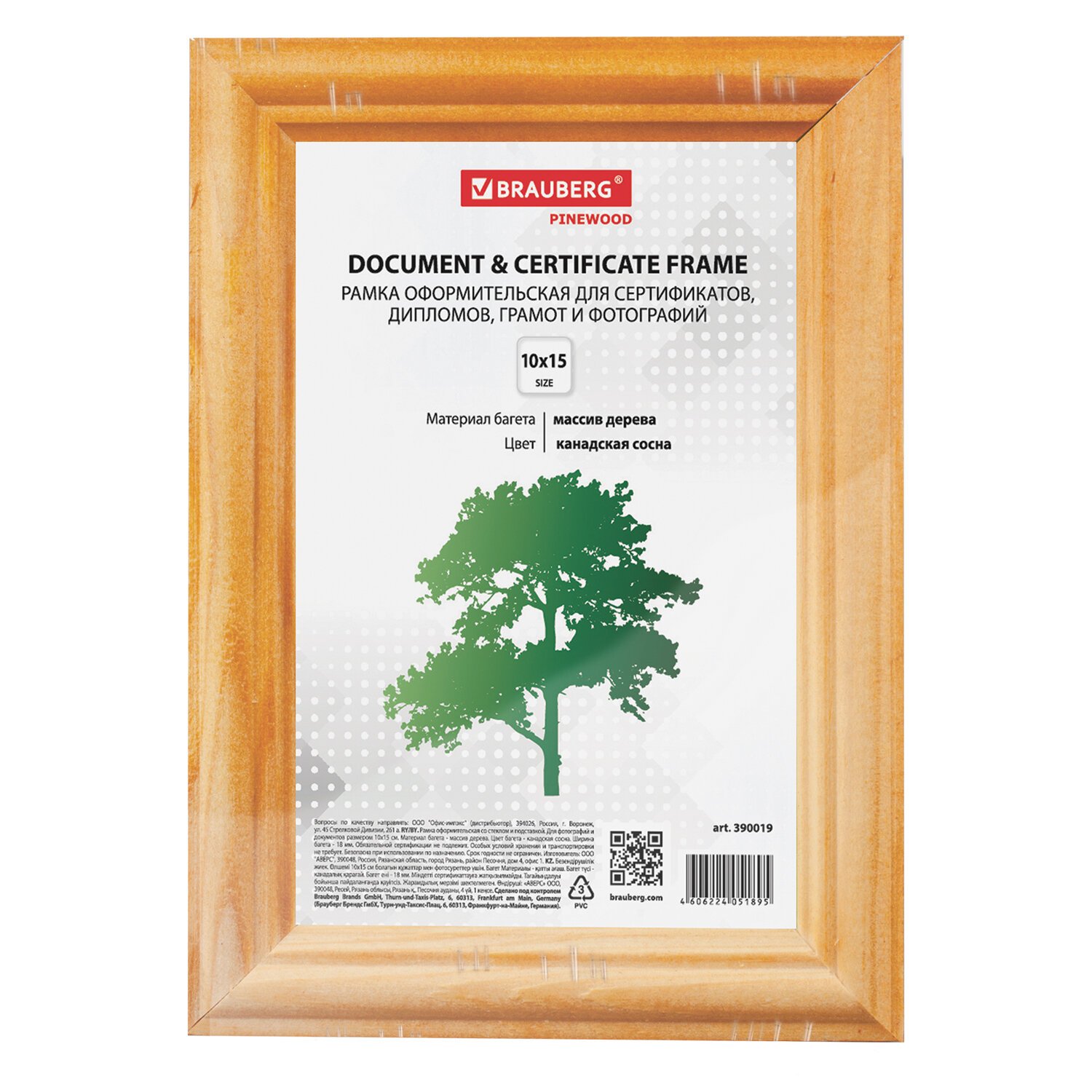 Рамка 10х15 см, дерево, багет 18 мм, BRAUBERG "HIT", канадская сосна, стекло, подставка, 390019