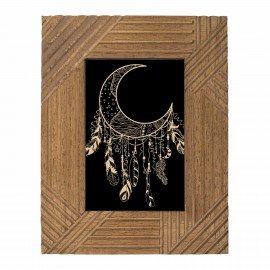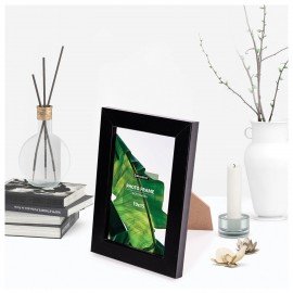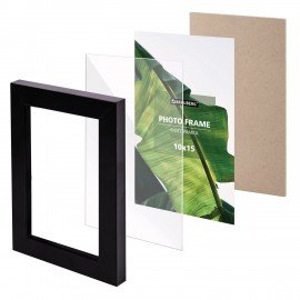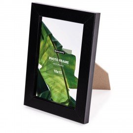Рамка компактного формата А6 (10х15 см) выполнена из МДФ в черном цвете. Имеется возможность вертикального и горизонтального подвеса, а также имеется подставка для установки рамки на столе.