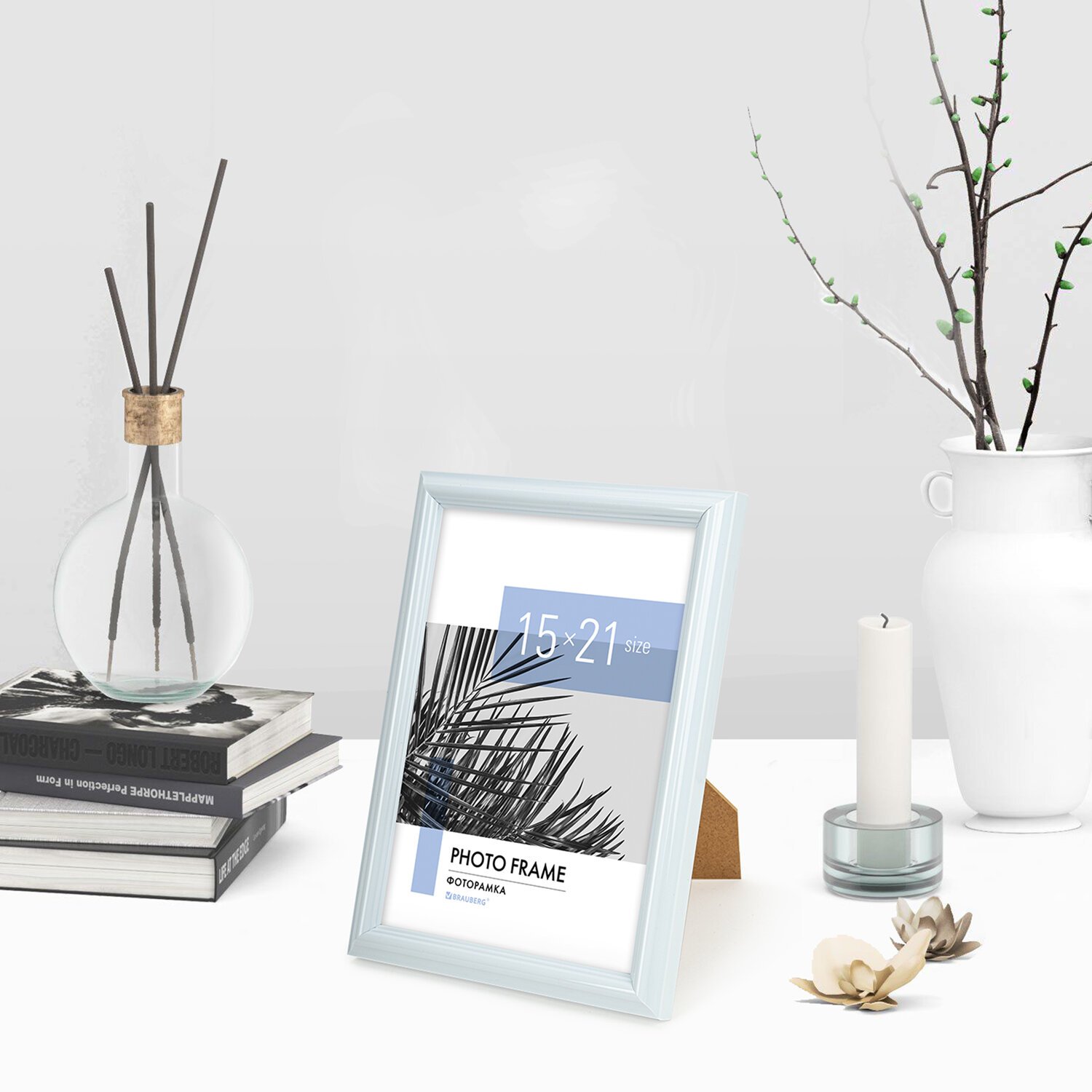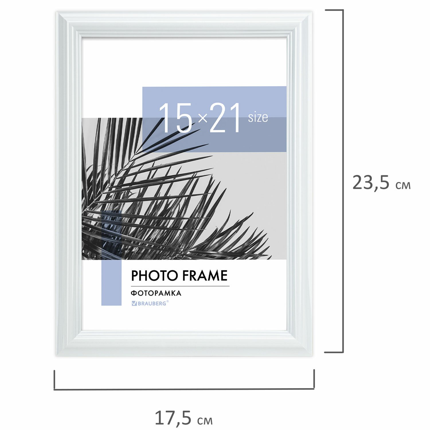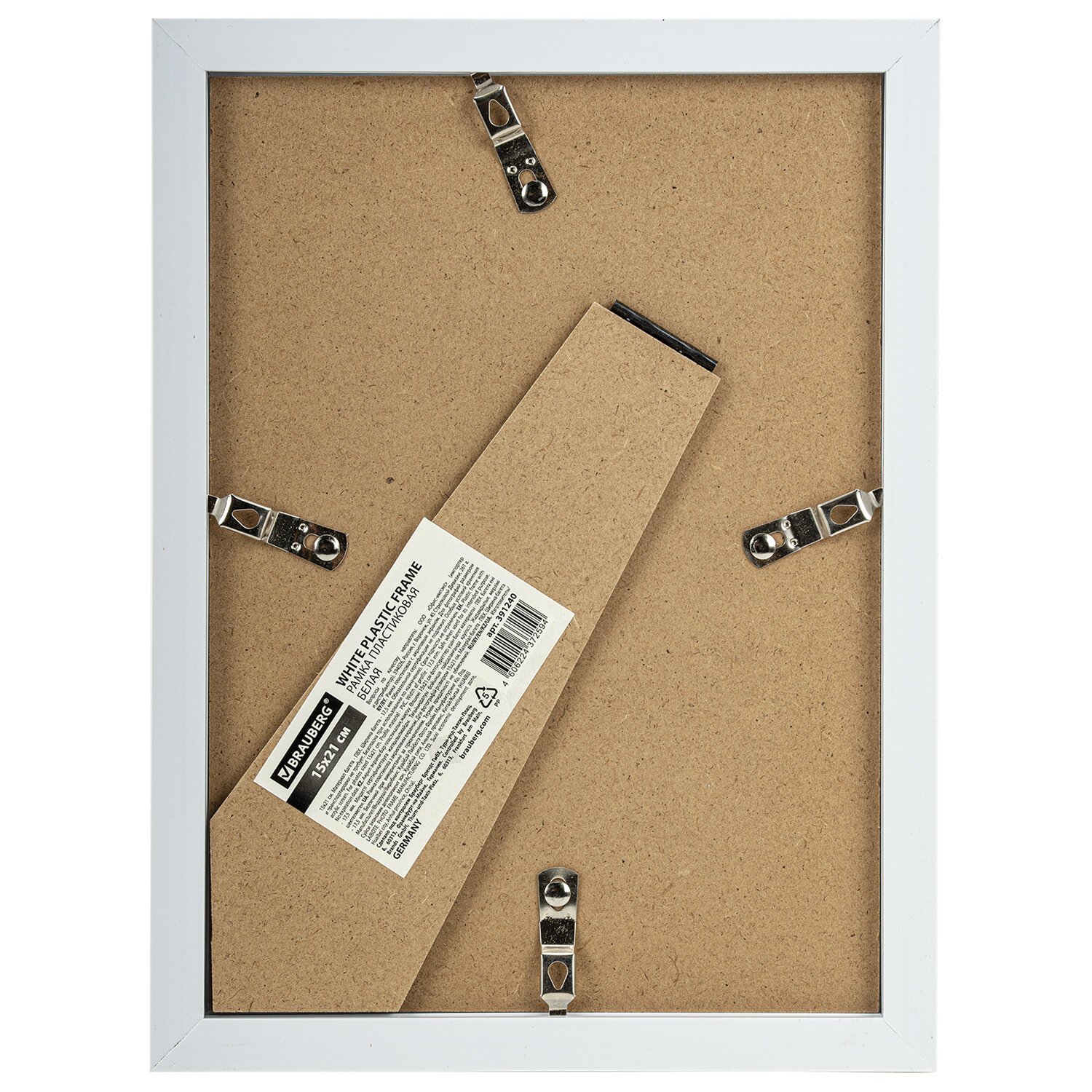 Рамка 15х21 см небьющаяся, багет 17,5 мм, пластик, BRAUBERG "Colorful", белая, 391240