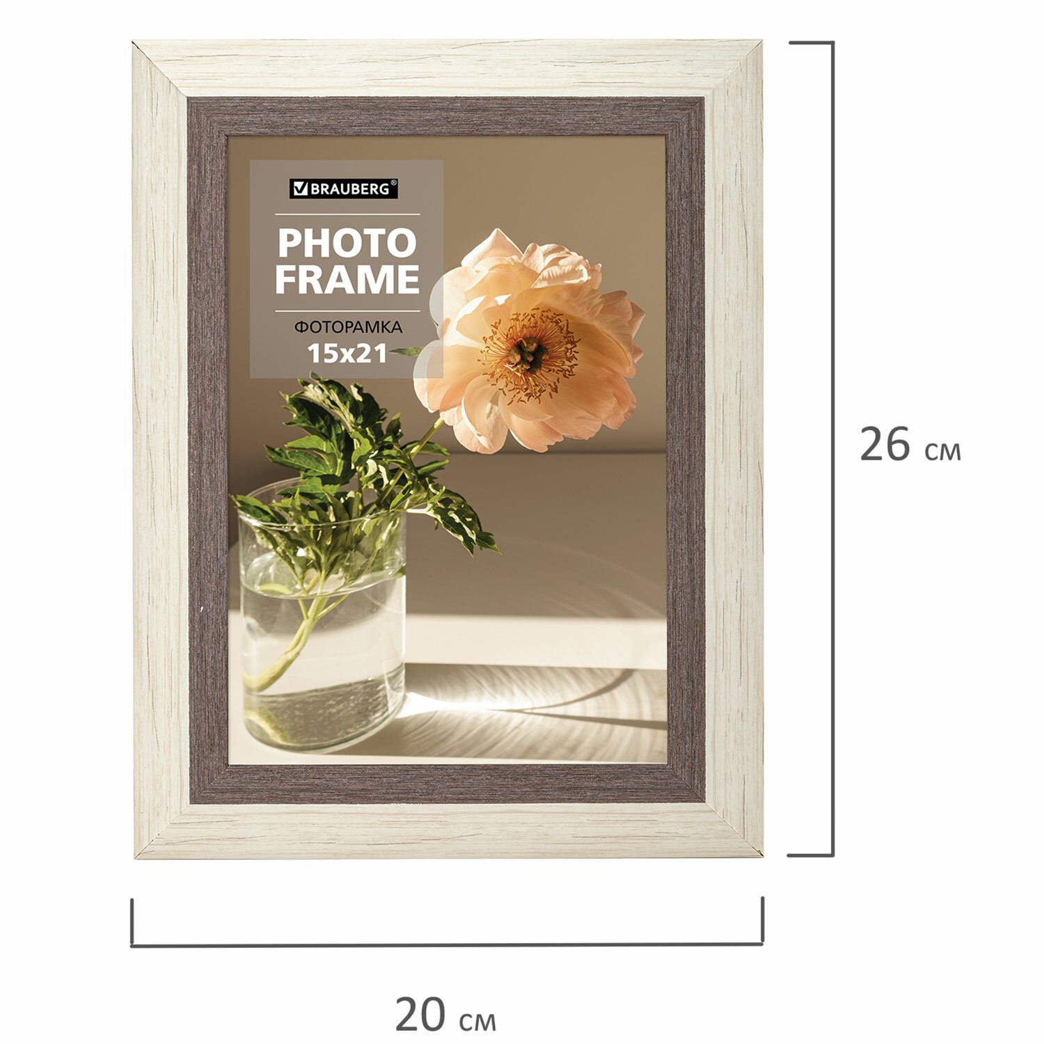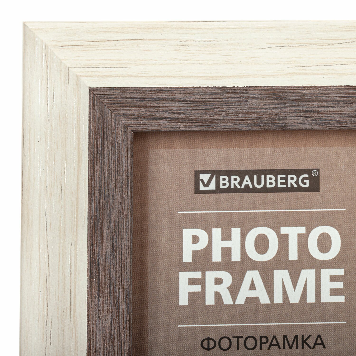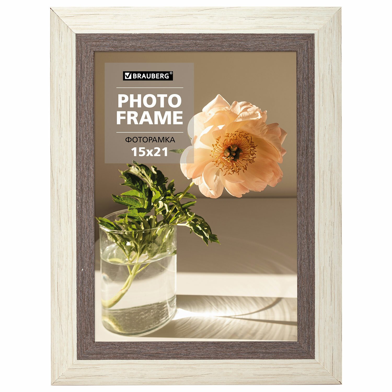 Рамка 15х21 см небьющаяся, багет 35 мм, МДФ, BRAUBERG "Esquire", белая/капучино, 391255