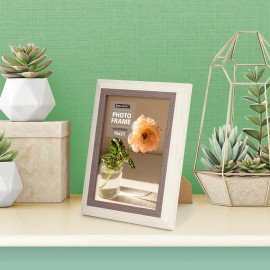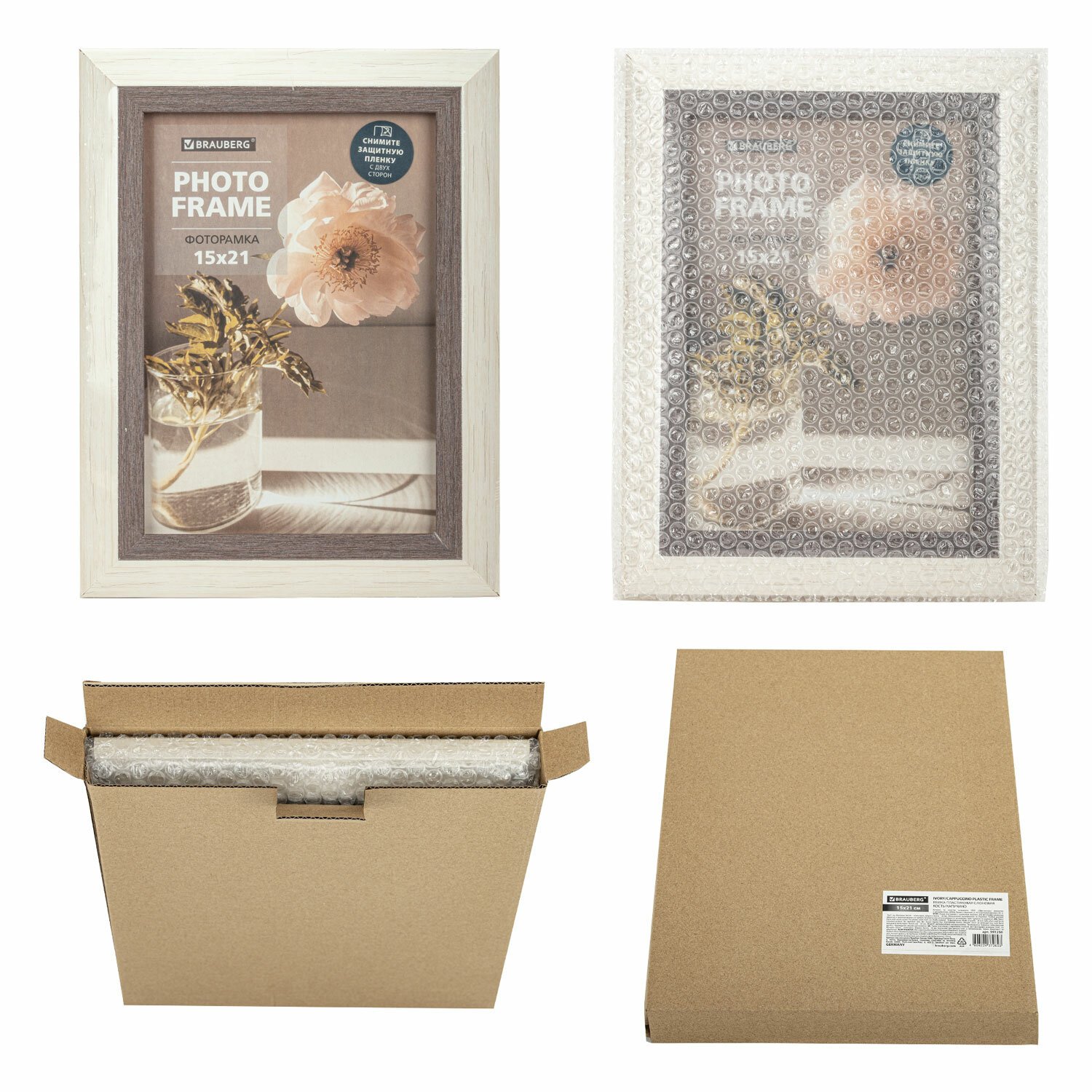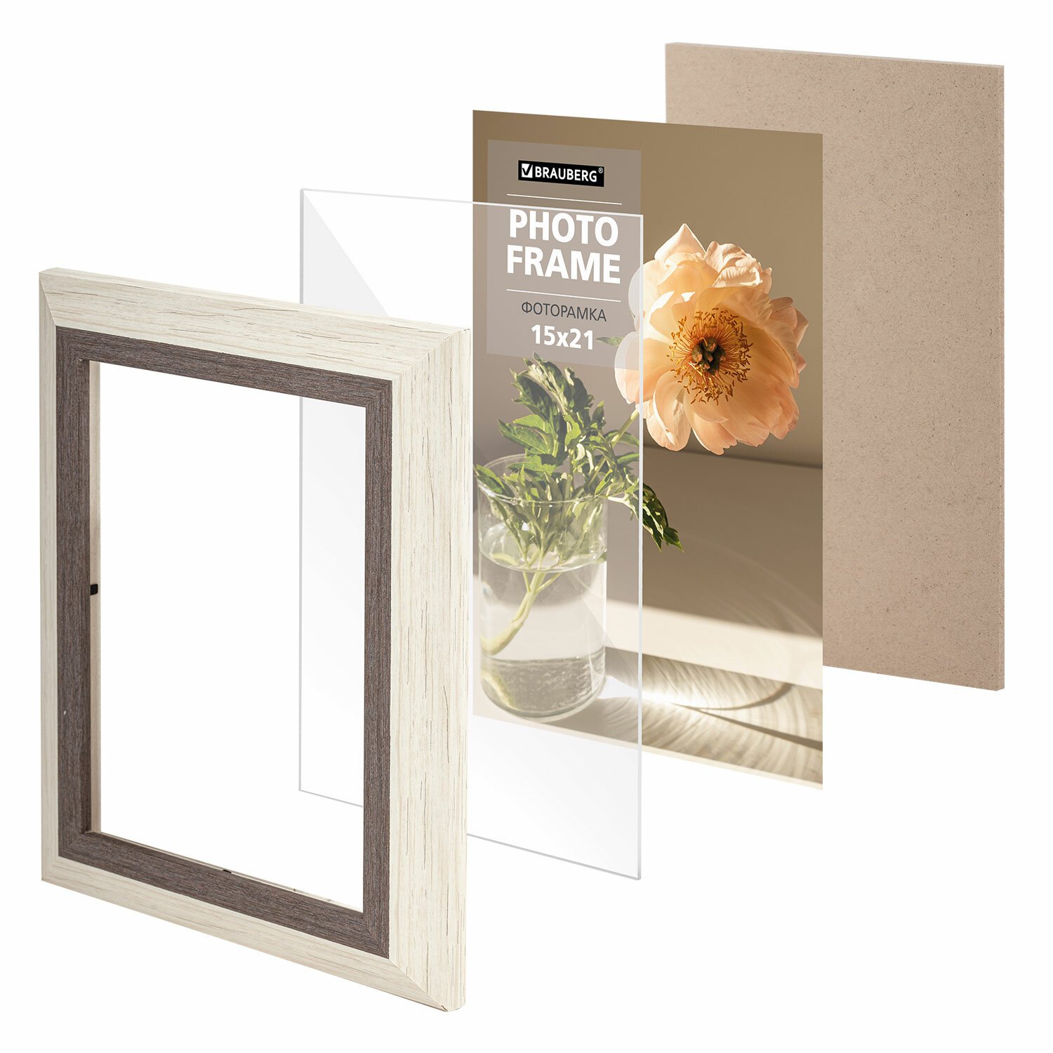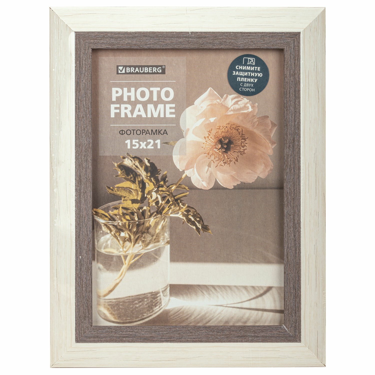 Рамка 15х21 см небьющаяся, багет 35 мм, МДФ, BRAUBERG "Esquire", белая/капучино, 391255