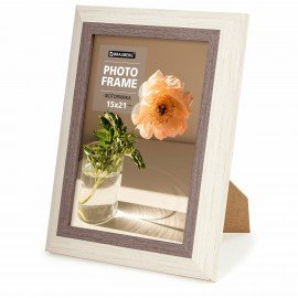 Рамка выполнена из полистирола с имитацией под дерево. Багет скомбинирован из двух благородных оттенков - слоновой кости и капучино, за счет чего рамка станет дополнением к любому интерьеру как дома, так и в офисе. У рамки имеется возможность вертикального и горизонтального подвеса, а также имеется подставка для установки рамки на столе.
