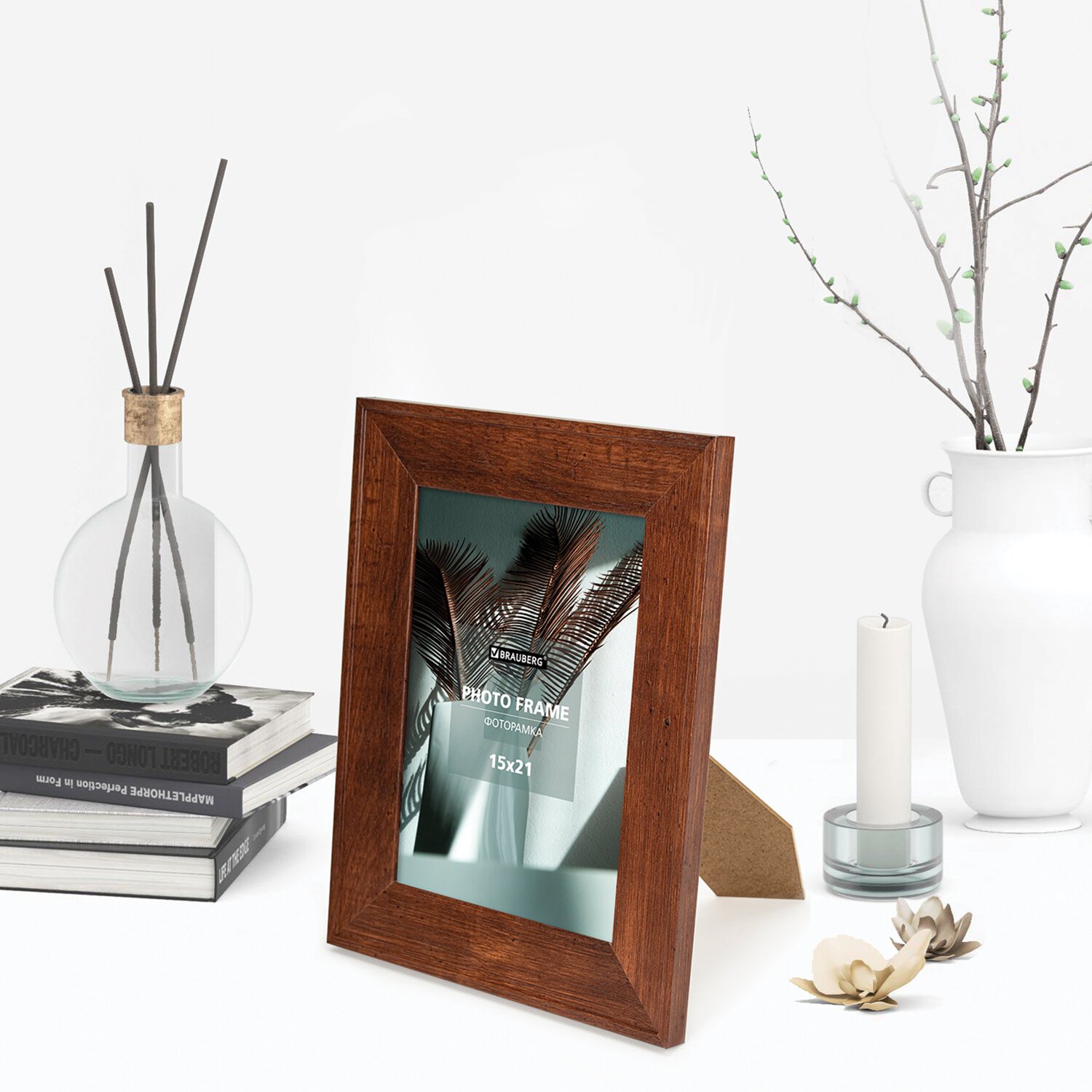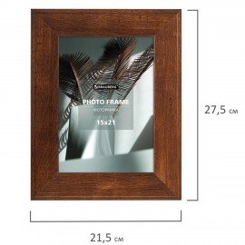 Рамка 15х21 см небьющаяся, багет 40 мм пластик, BRAUBERG "Walnut", цвет орех, 391264