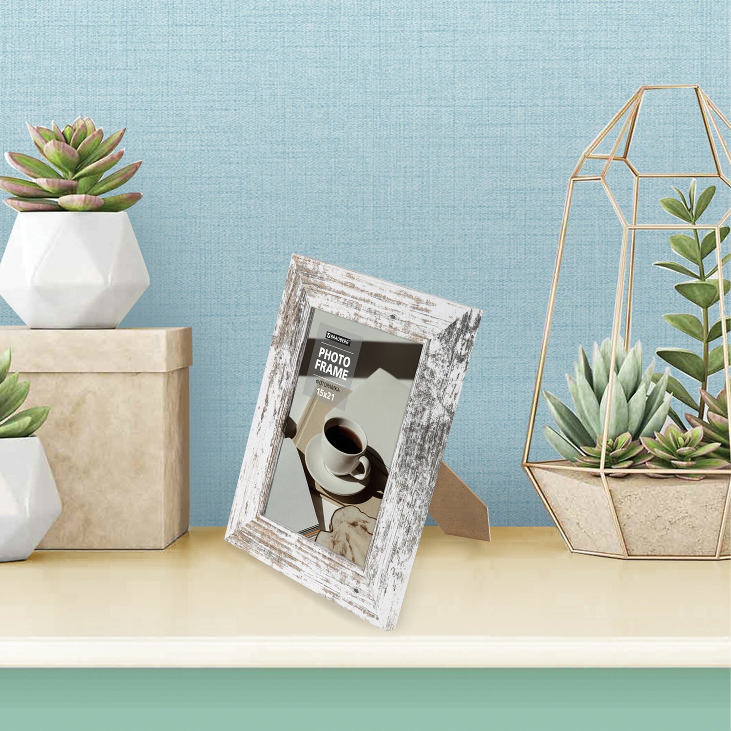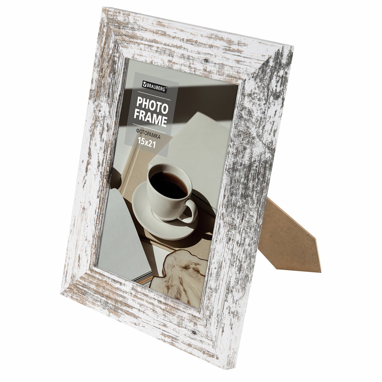 Рамка 15х21 см небьющаяся, багет 35 мм, МДФ, BRAUBERG "Esquire", белая/капучино, 391255