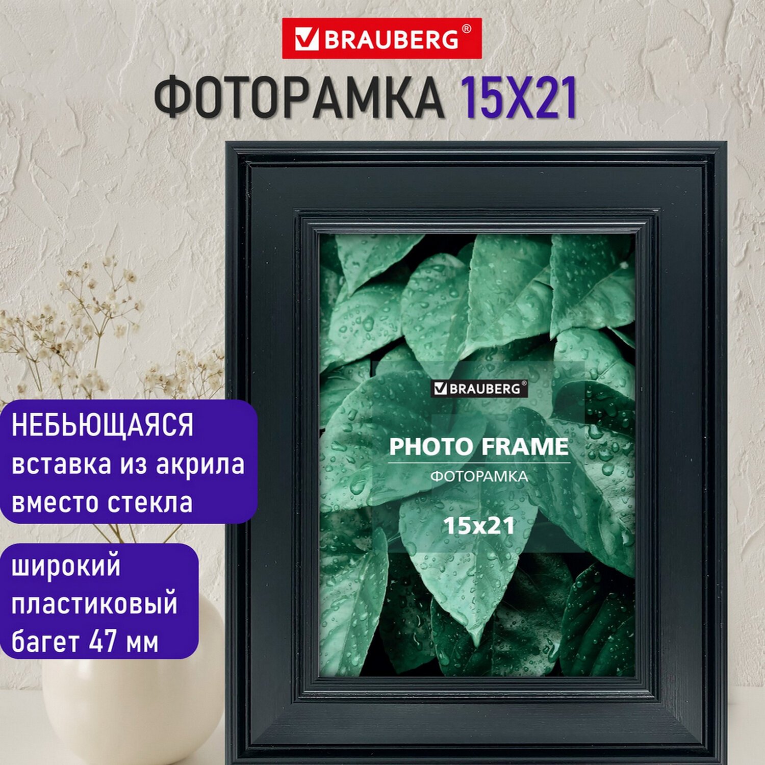Рамка 15х21 см небьющаяся, багет 47 мм, пластик, BRAUBERG "Albert", черная, 391263