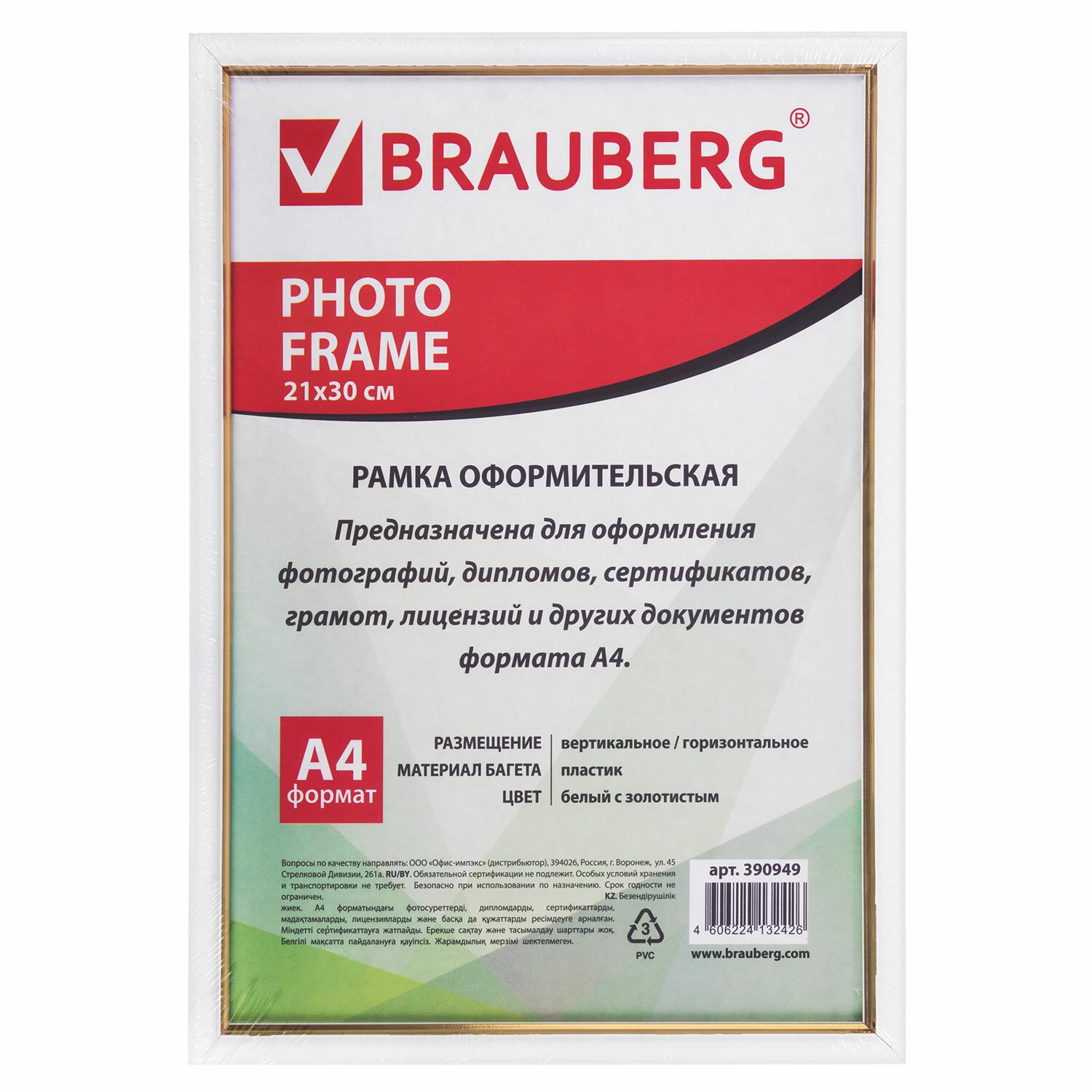 Рамка BRAUBERG "HIT2" для оформления фотографий, дипломов, сертификатов, грамот, лицензий и других документов формата А4 (21х30 см) будет гармонично смотреться в любом интерьере - дома и офисе, учебных учреждениях и магазинах, салонах и предприятий и др.
