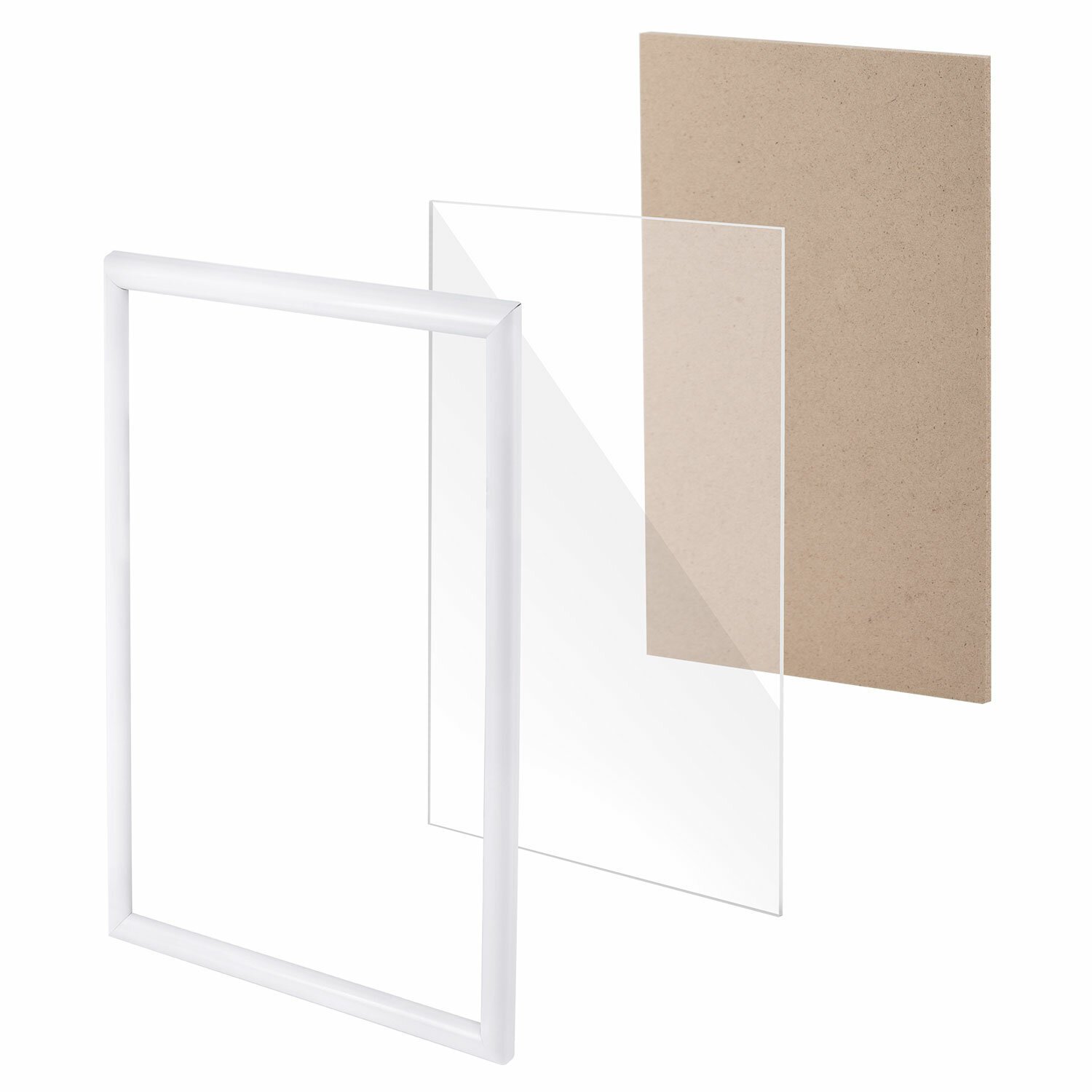 Рамка 21х30 см белая, пластик, багет 8 мм, BRAUBERG "Slim", плотный задник с ножкой, акриловый экран, 391314