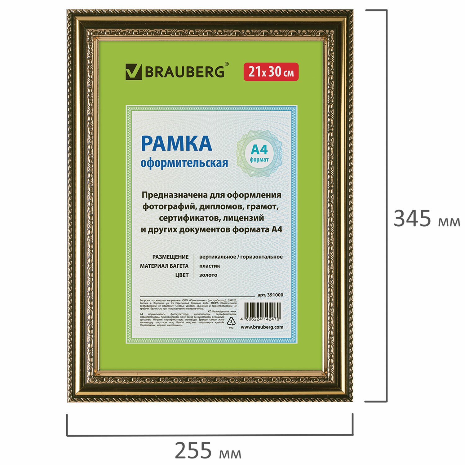 Рамка BRAUBERG "HIT4" для оформления фотографий, дипломов, сертификатов, грамот, лицензий и других документов формата А4 (21х30 см) будет гармонично смотреться в любом интерьере - дома и офисе, учебных учреждениях и магазинах, салонах и предприятий и др.