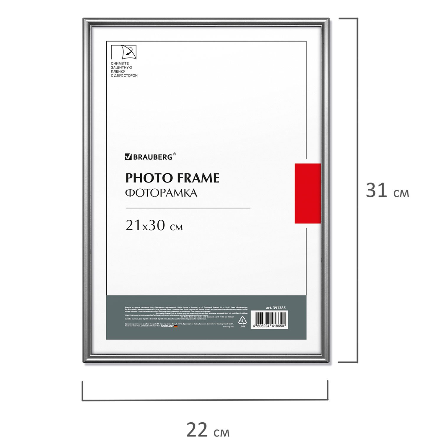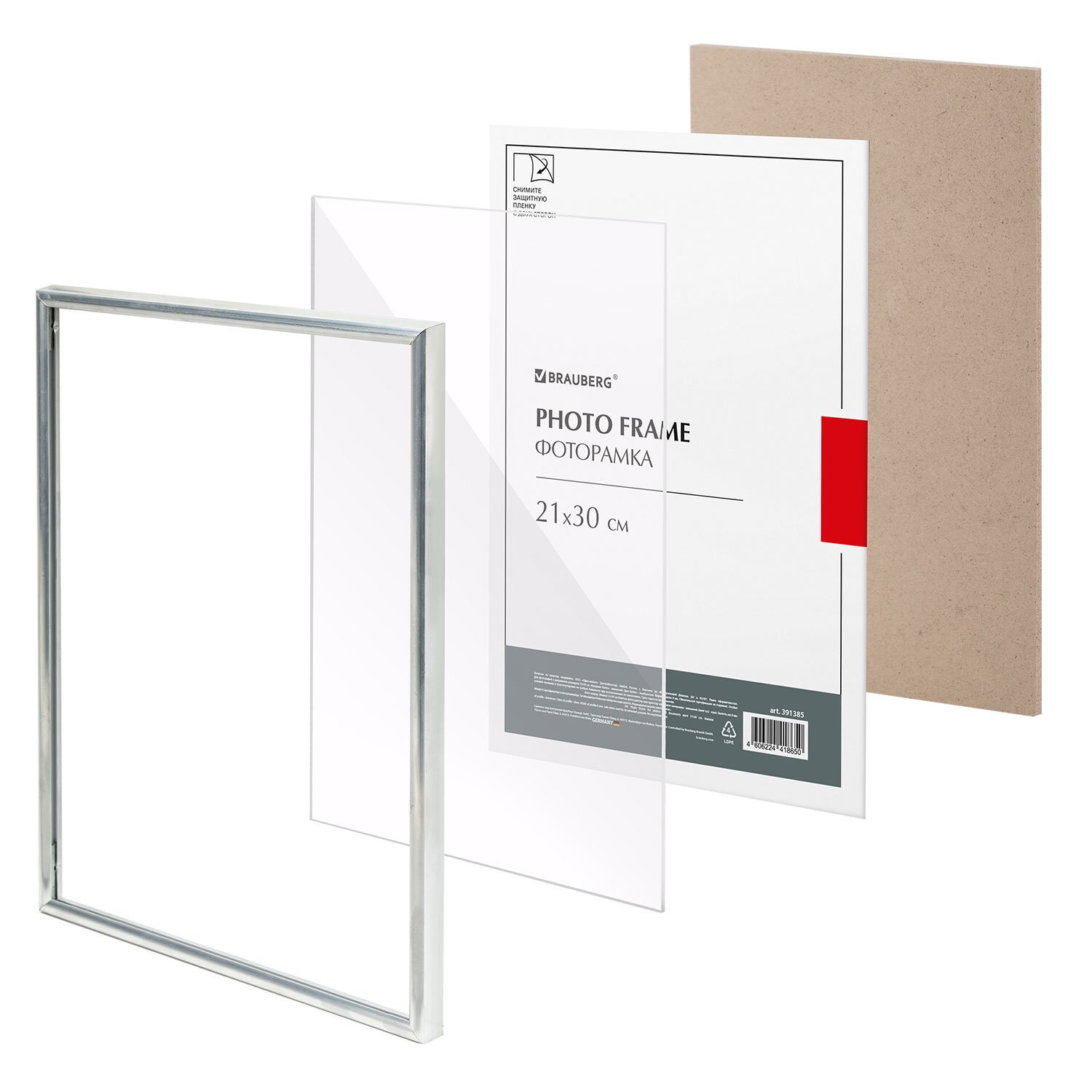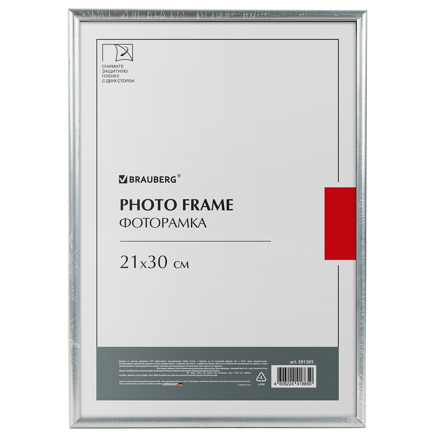 Рамка 21х30 см со стеклом, багет 8 мм, МЕТАЛЛ, BRAUBERG "Blade", серебристая, 391385
