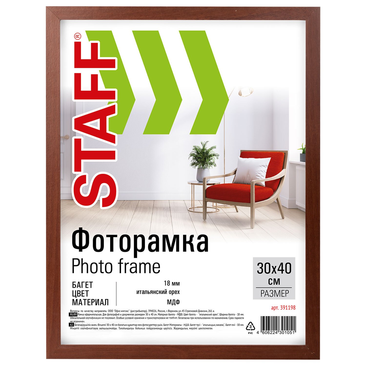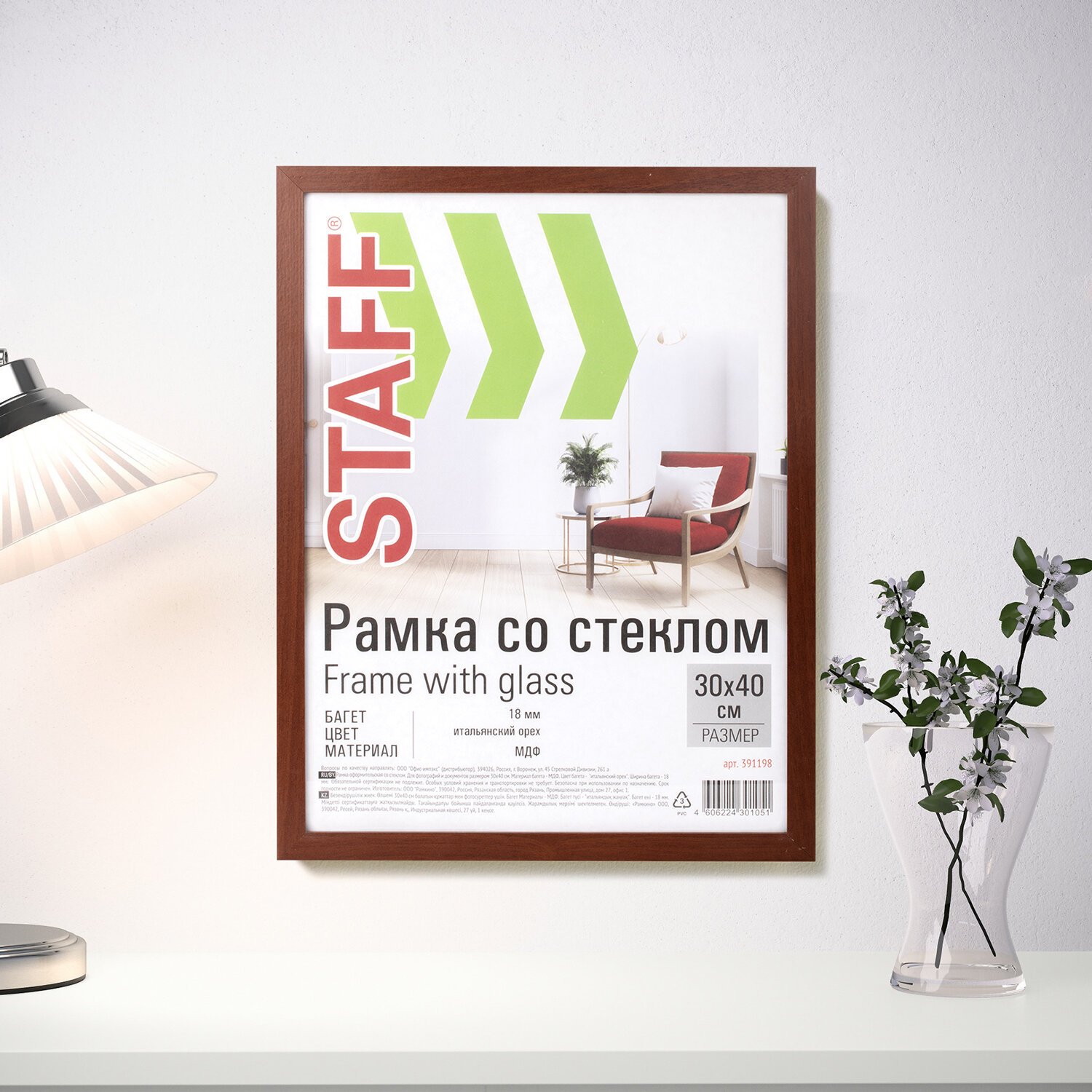 Рамка 30х40 см "итальянский орех" STAFF "Grand", багет 18 мм, стекло, МДФ, 391198