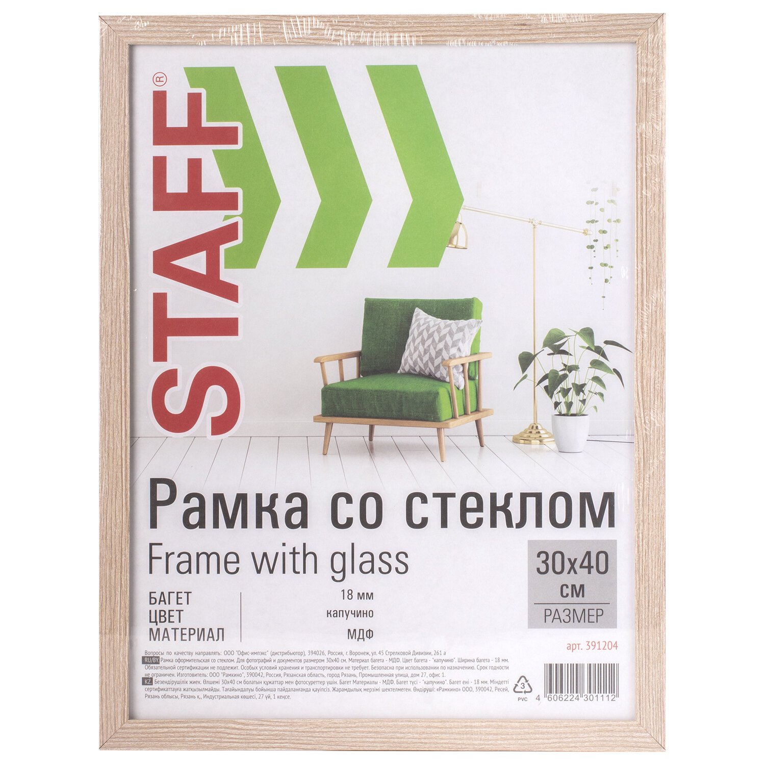 Рамка 30х40 см "капучино" STAFF "Grand", багет 18 мм, стекло, МДФ, 391204