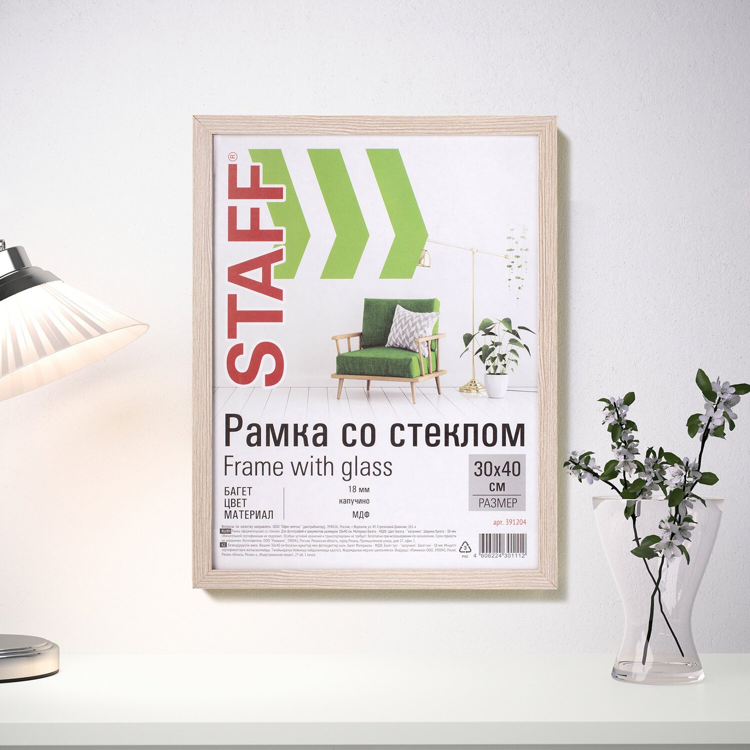 Рамка 30х40 см, белая STAFF "Grand", багет 18 мм, стекло, МДФ, 391195