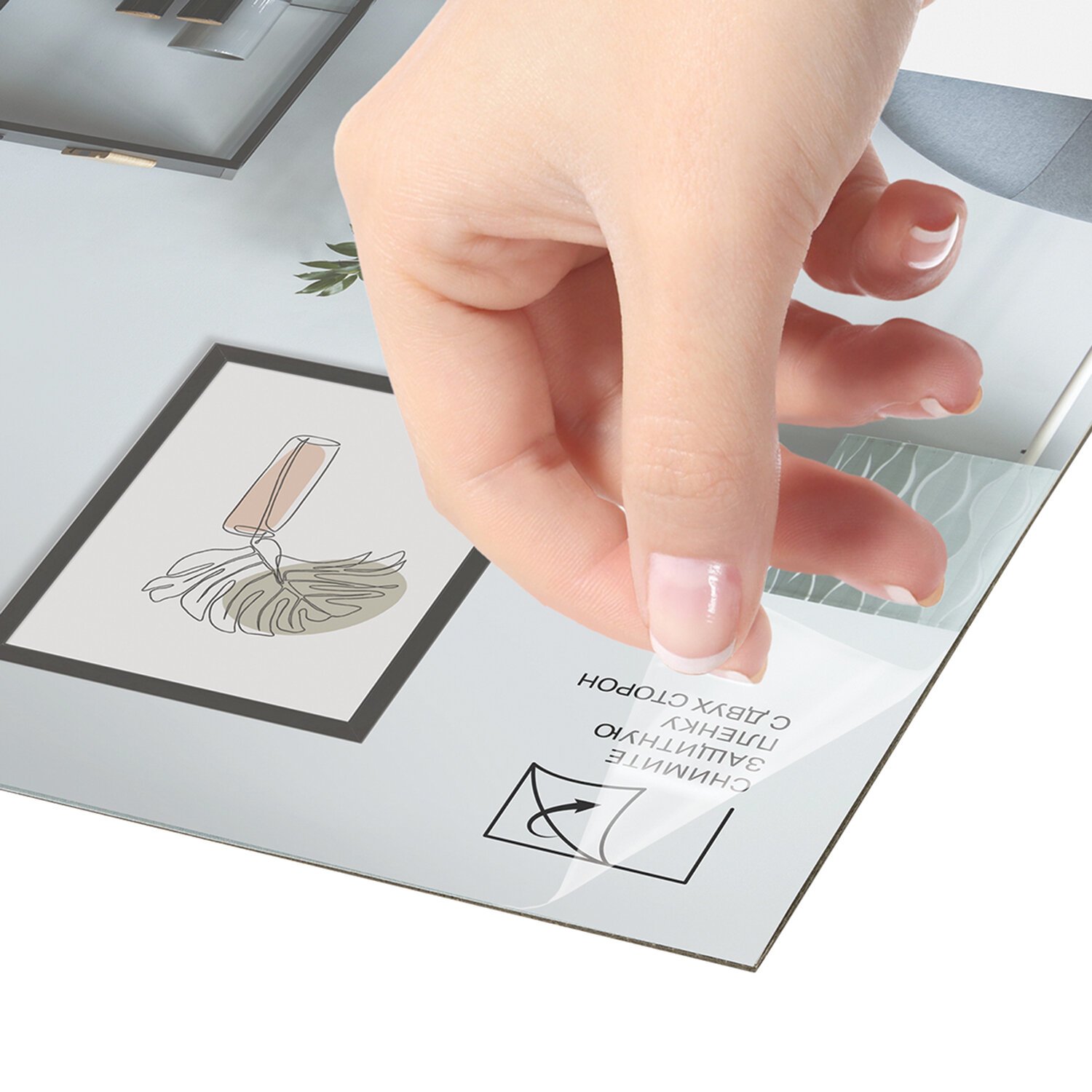 Ширина багета с передней части рамки - 21 мм, ширина багета с задней части рамки - 9 мм, высота багета - 12 мм. Вставка из акрила вместо обычного стекла делает рамку менее хрупкой. Перед применением снимите пленку с обеих сторон экрана.