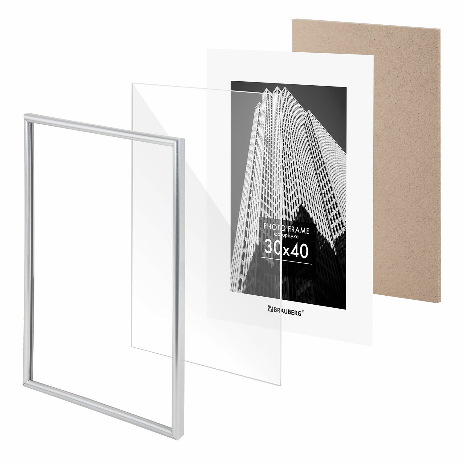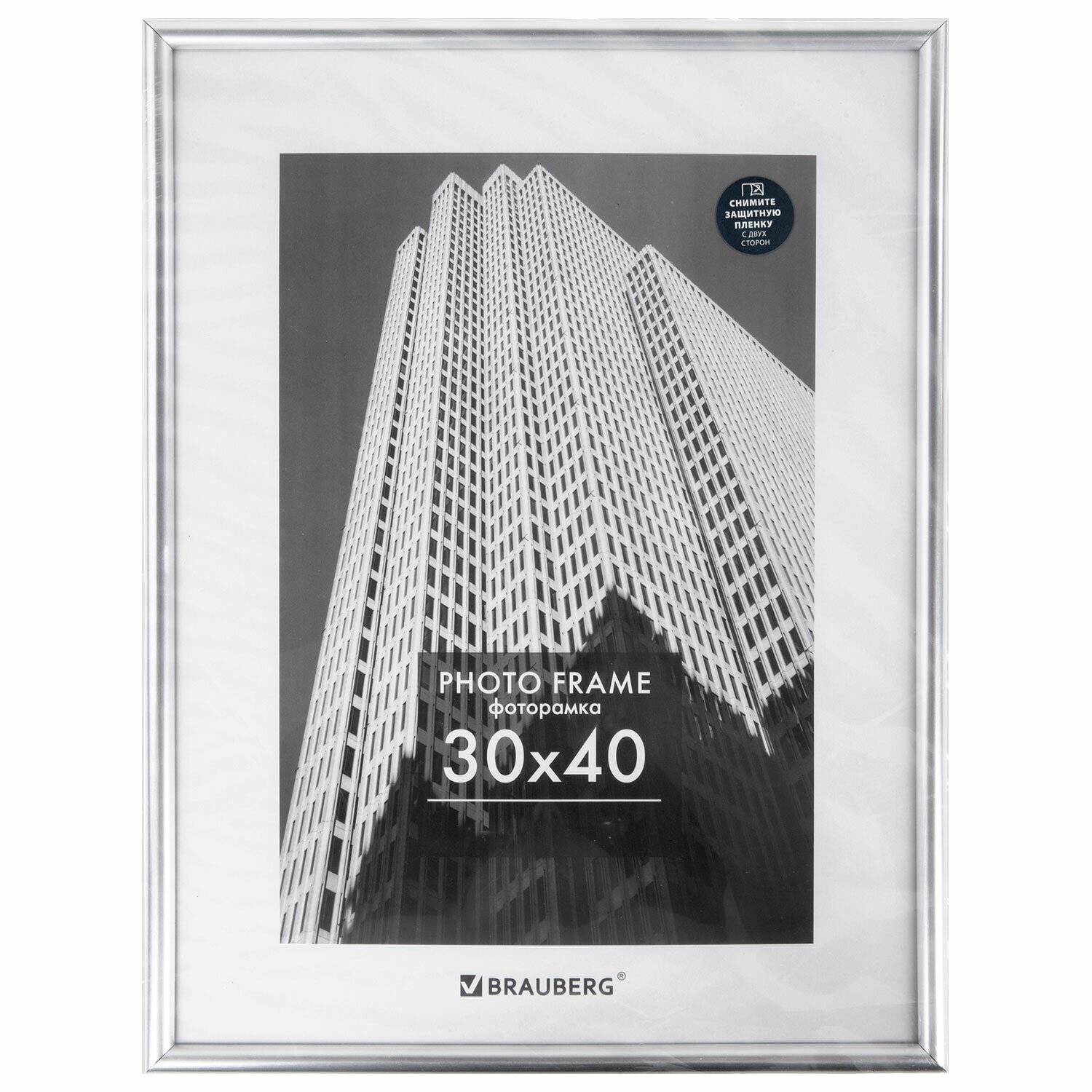 Рамка 30х40 см небьющаяся, багет 12 мм, пластик, BRAUBERG "Original", серебристая, 391232