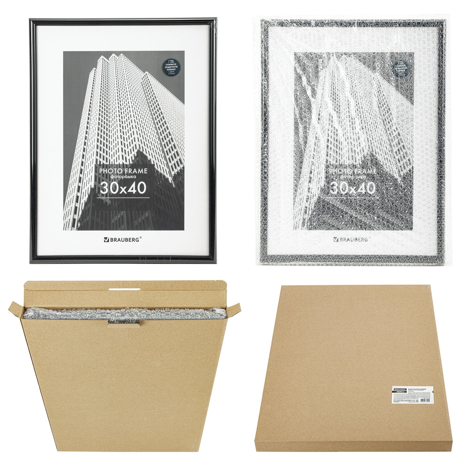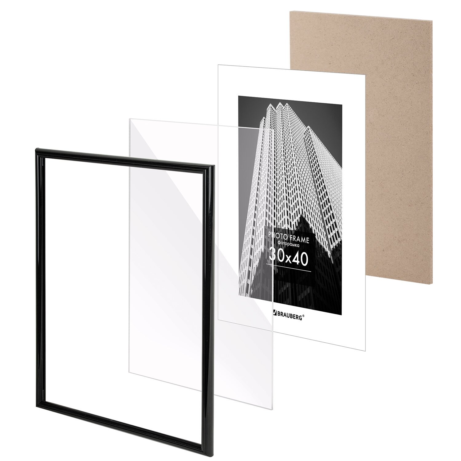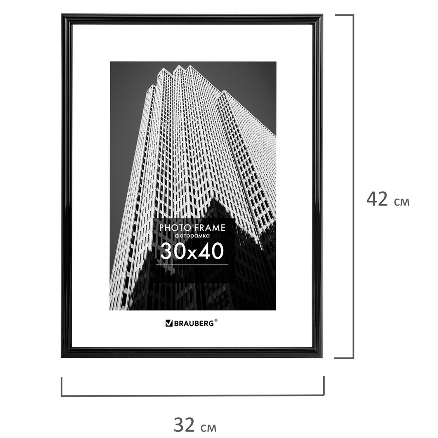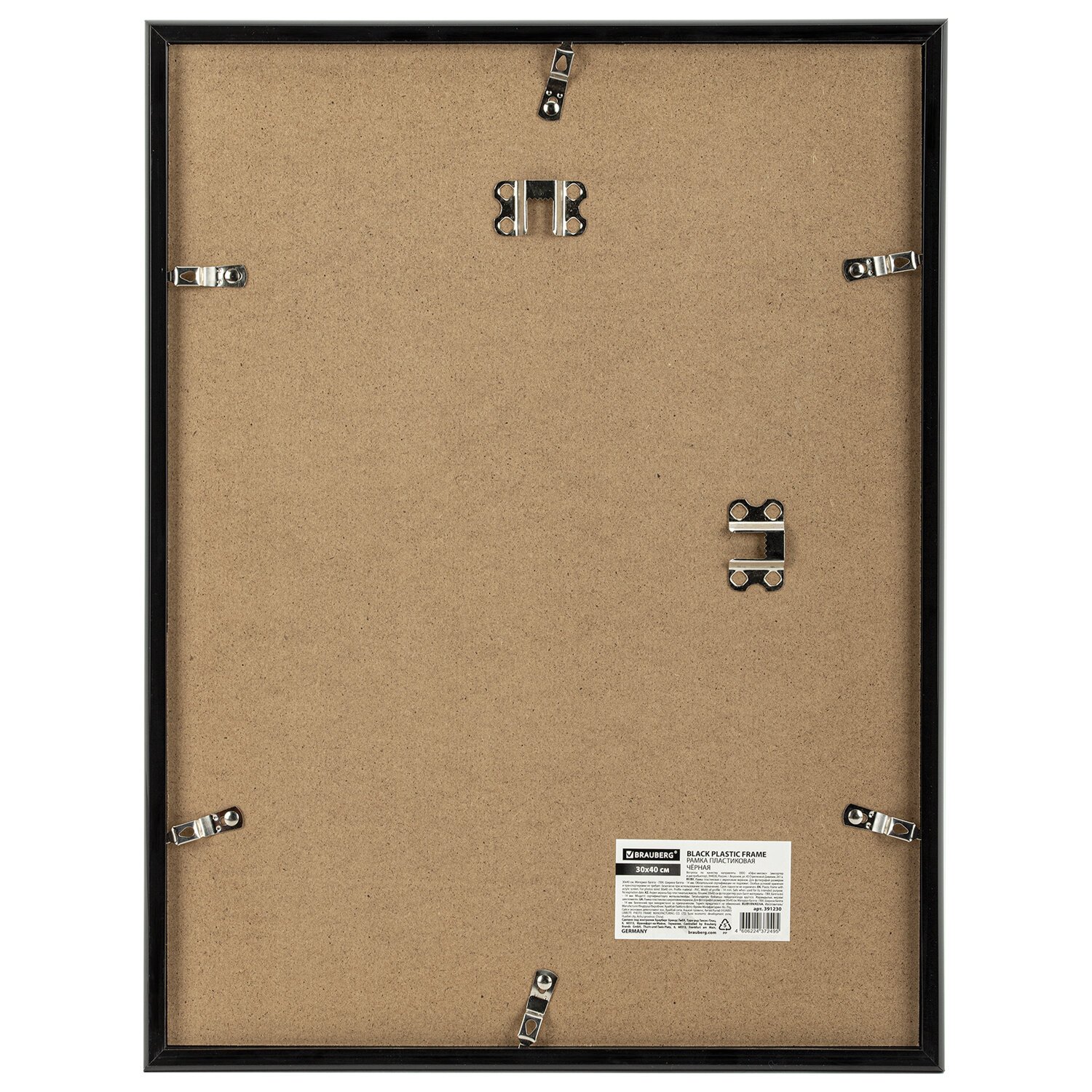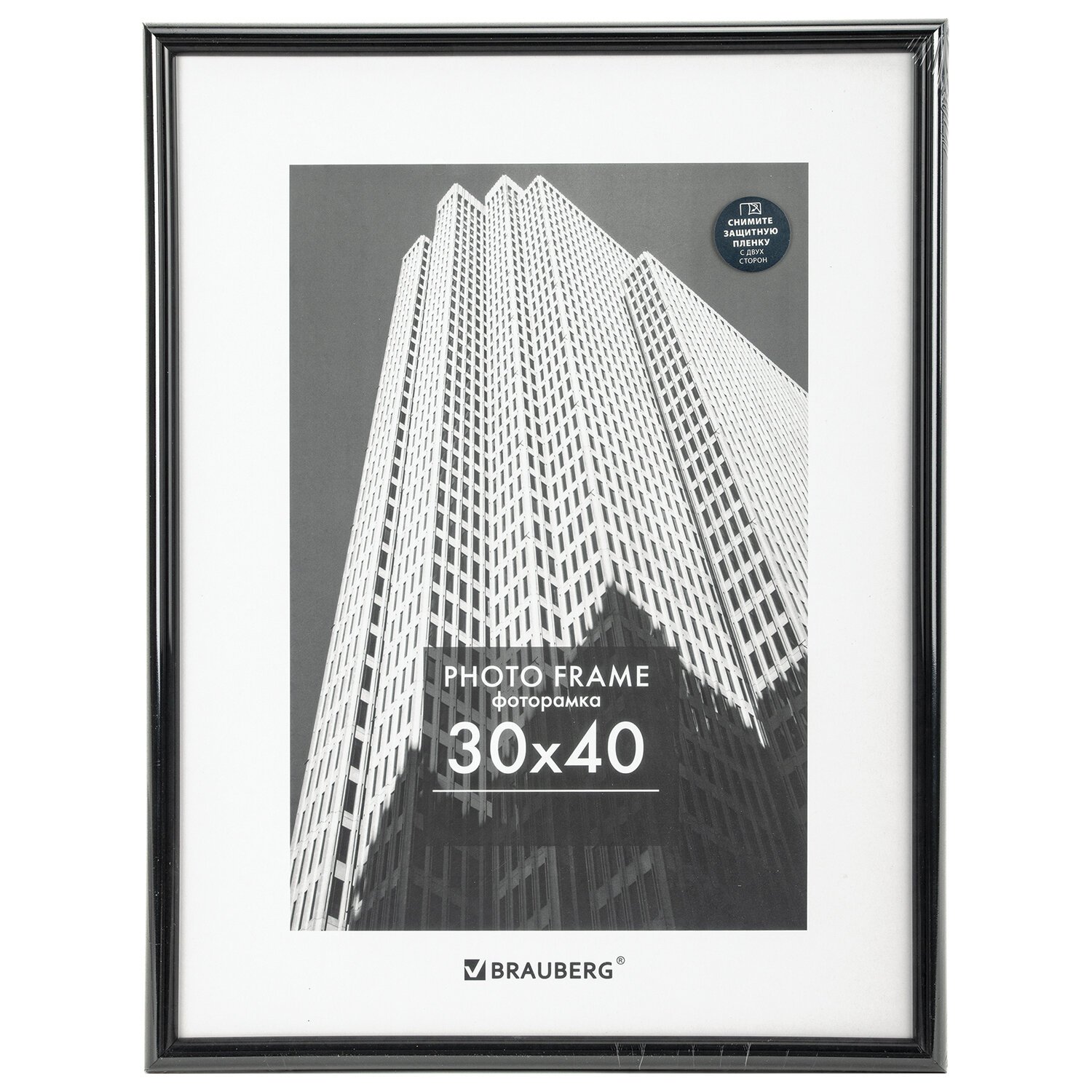 Рамка 30х40 см небьющаяся, багет 14 мм, пластик, BRAUBERG "Original", черная, 391230