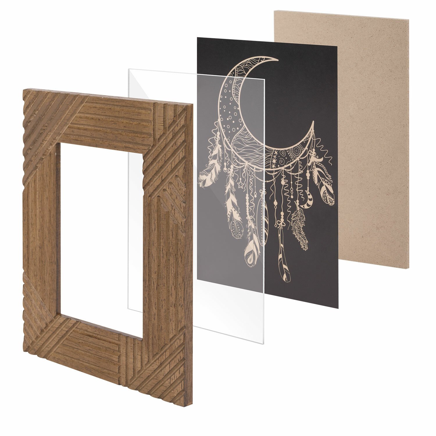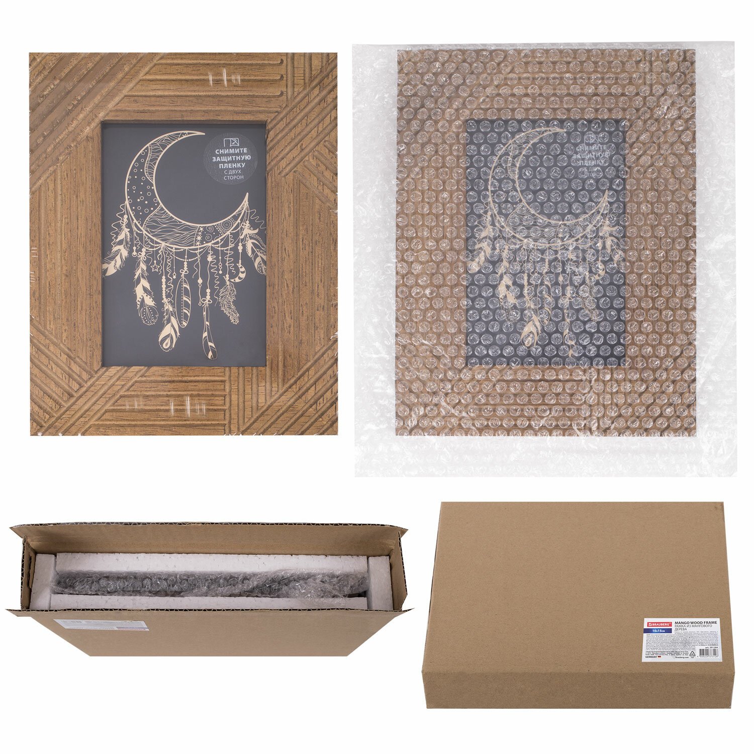 Задняя панель выполнена из прочного МДФ. Рамка поставляется в термоусадочной плёнке. Для дополнительной защиты от сколов и потертостей она упакована в трехслойный гофрокороб с пенопластом внутри.