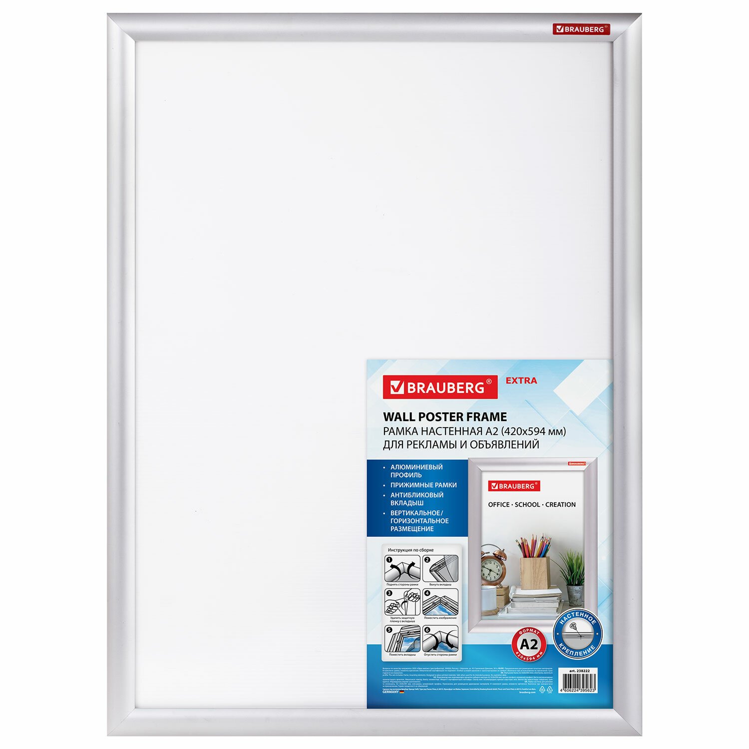 Рамка настенная для рекламы БОЛЬШОГО ФОРМАТА (420х594 мм), алюминиевая, прижимные стороны, BRAUBERG, 232205