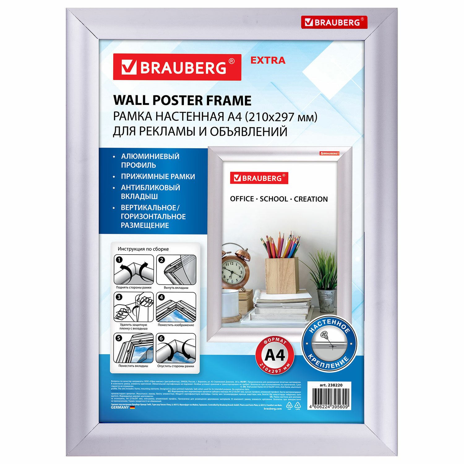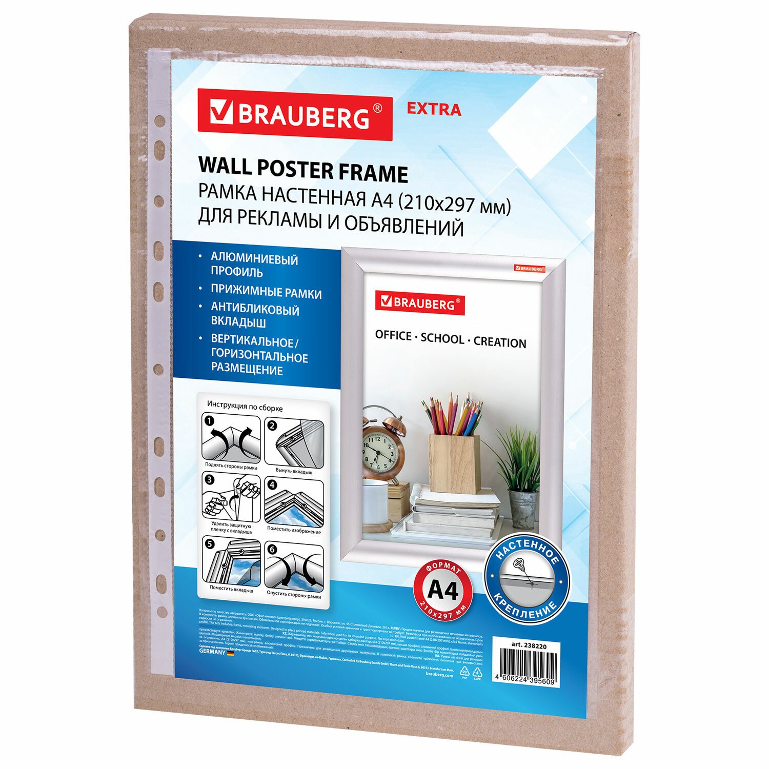 Рамка настенная с защелкивающимся профилем BRAUBERG "Extra" предназначена для размещения печатных материалов. Идеально подходит для использования в офисе, торговых залах, пунктах выдачи, медицинских и других учреждениях.